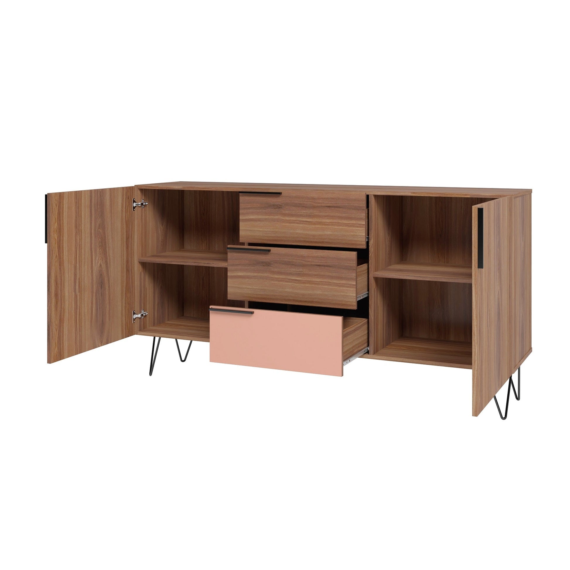 Manhattan Comfort Beekman 62.99 Sideboard with 4 Shelves in Brown and Pink 403AMC229