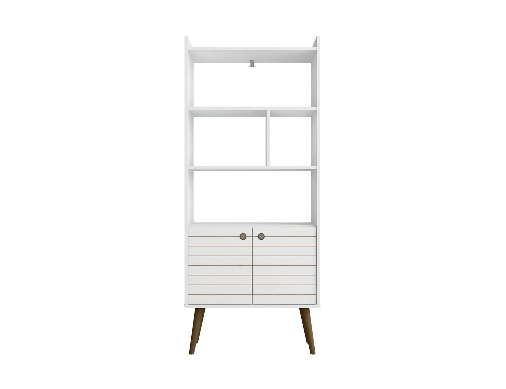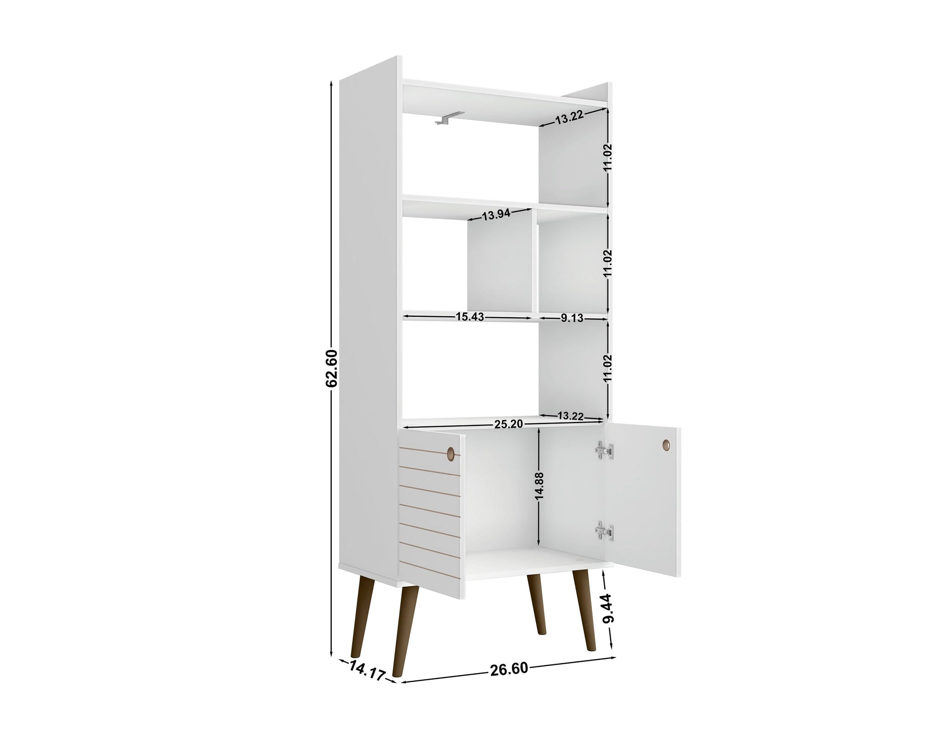 Manhattan Comfort Bogart 62.6" Mid-Century Modern Bookcase in White and Nature 254BMC6