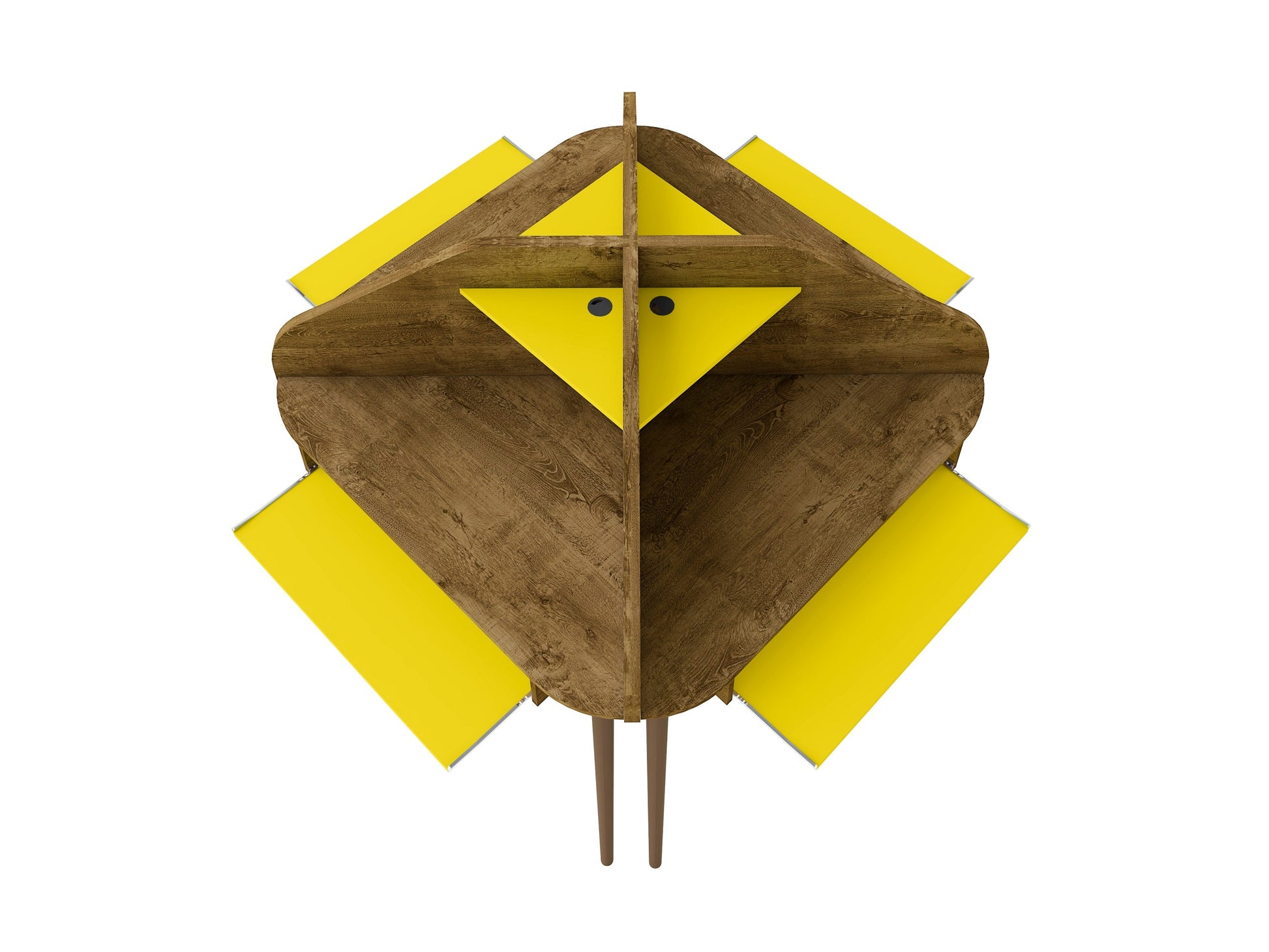 Manhattan Comfort Bradley 4-Piece Round Sectional Cubicle Desk with Keyboard Shelf in Rustic Brown and Yellow 4-229BMC94