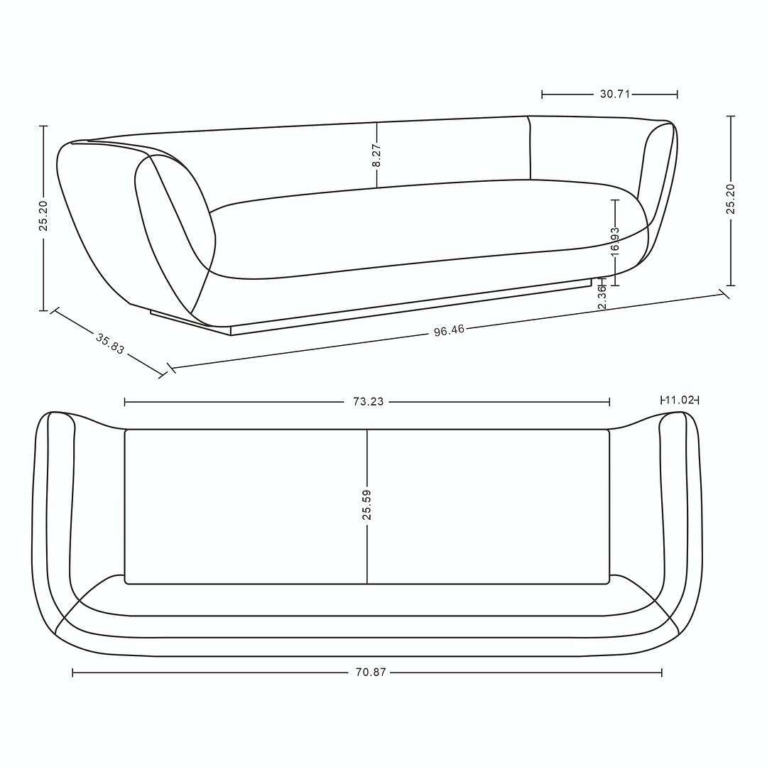 Tested for commercial-grade durability and boasting an impressive weight capacity of 880 lbs, it seamlessly combines elegance with strength. Plus, it arrives fully assembled, making it a hassle-free addition to your living space. Dimensions : 96.46 in. Length, 25.2 in. Height, 35.83 in. Depth.