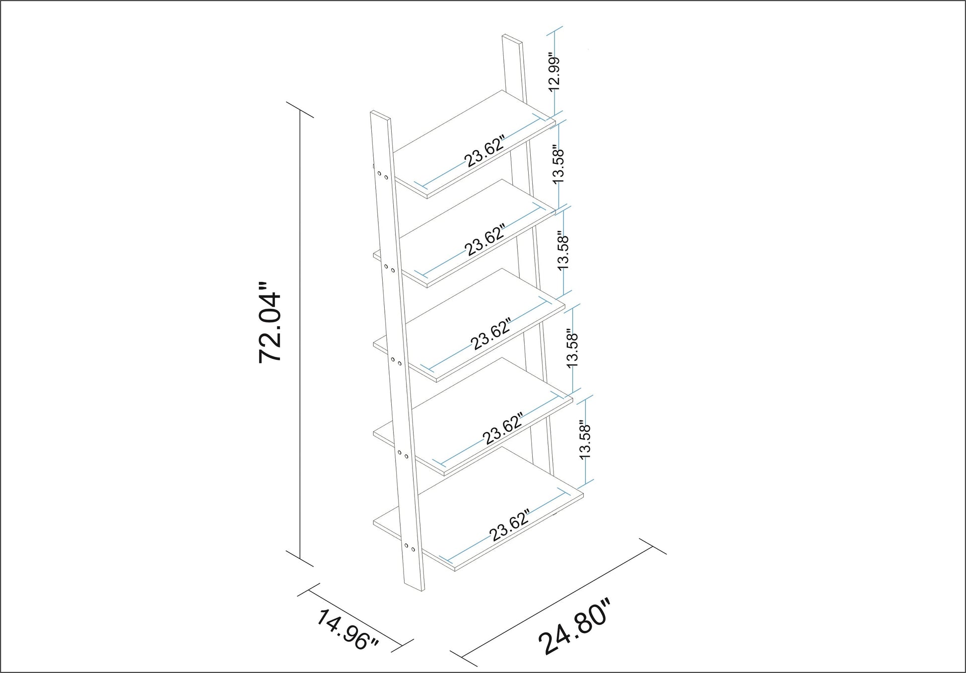 The Cooper ladder bookcase is a classic Mid-Century modern piece and an essential office or living room sidekick. With plenty of open shelving to display your most impressive books, showcase decorative accents, photography, and beyond, this piece is as useful as it is stylish. Clean lines and subtle design lend this bookcase to a contemporary space, though it blends well with almost any existing decor. Dimensions: 24.8 in. Length, 72.04 in. Height, 14.96 in Depth.