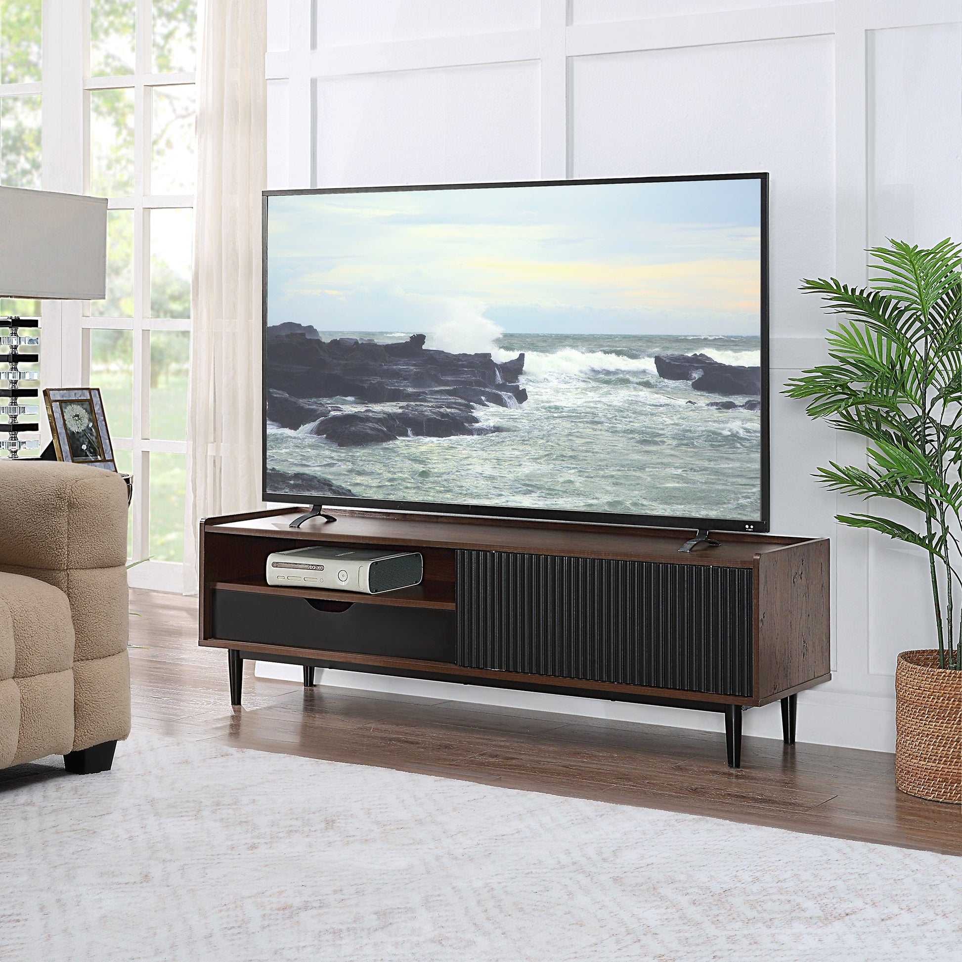 Manhattan Comfort Duane Modern Ribbed 4 Piece Living Room Set: Sideboard, TV Stand, Coffee Table, End Table in Dark Brown and Black 4-8911GLF-BK