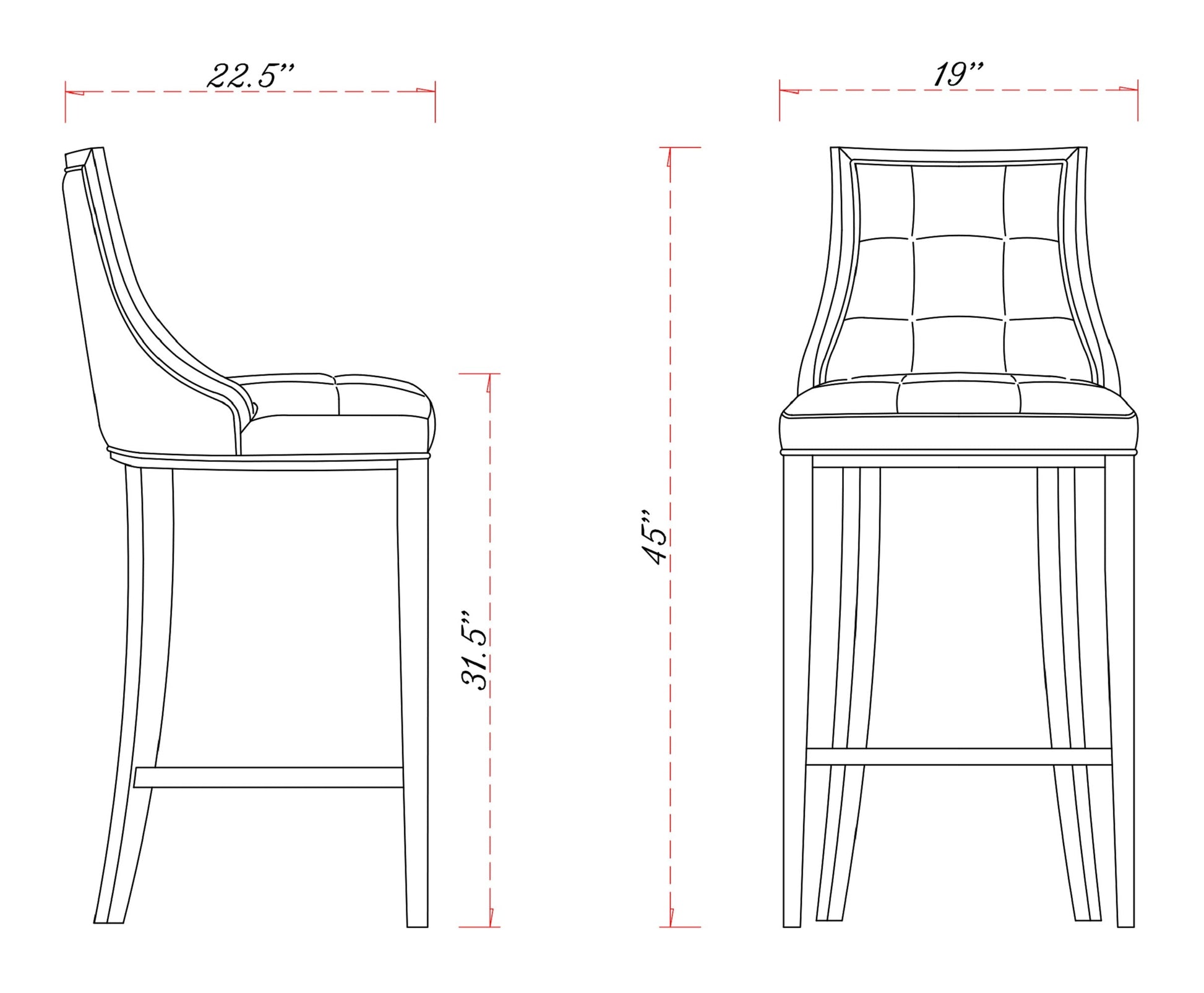 Traditional style gets a custom look. Sophisticated, opulent, and unexpectedly chic, this versatile bar stool's classic design is elegantly simple, accented by dignified rectangular channeling on the seat and back. Aesthetically pleasing and available in a variety of attractive options, the Fifth Avenue Bar Stools will transform your space with their unique personality and character. Dimensions: 19 in. Length, 45 in. Height, 22.5 in. Depth.