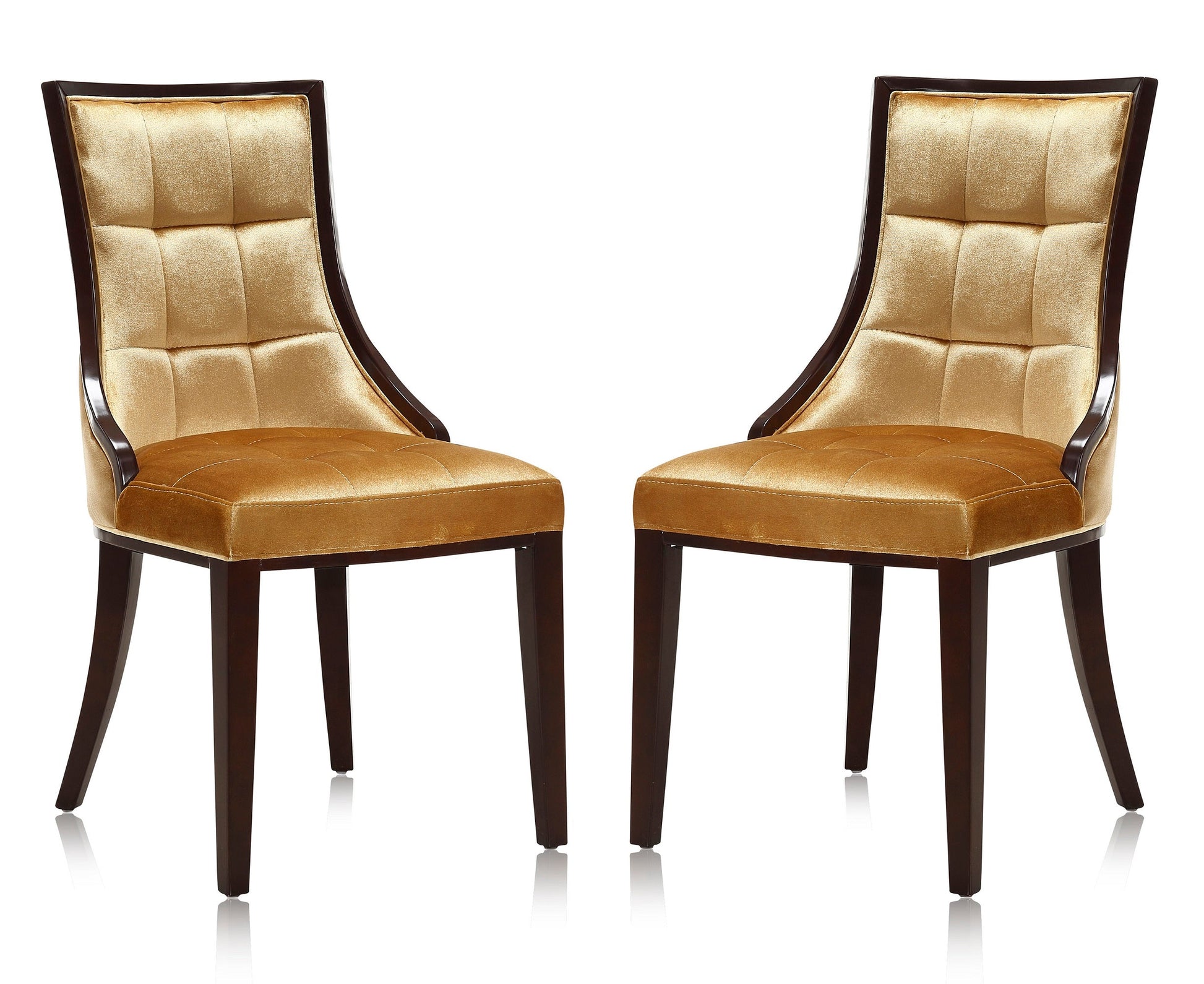 Manhattan Comfort Fifth Avenue Antique Gold and Walnut Velvet Dining Chair (Set of Two) DC008-AG