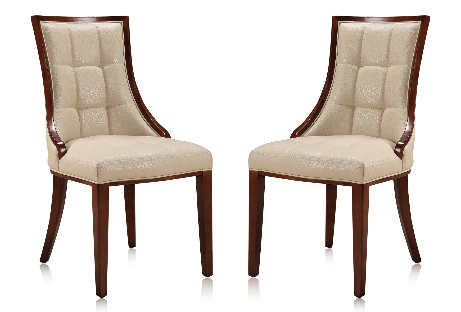Manhattan Comfort Fifth Avenue Cream and Walnut Faux Leather Dining Chair (Set of Two) DC008-CR
