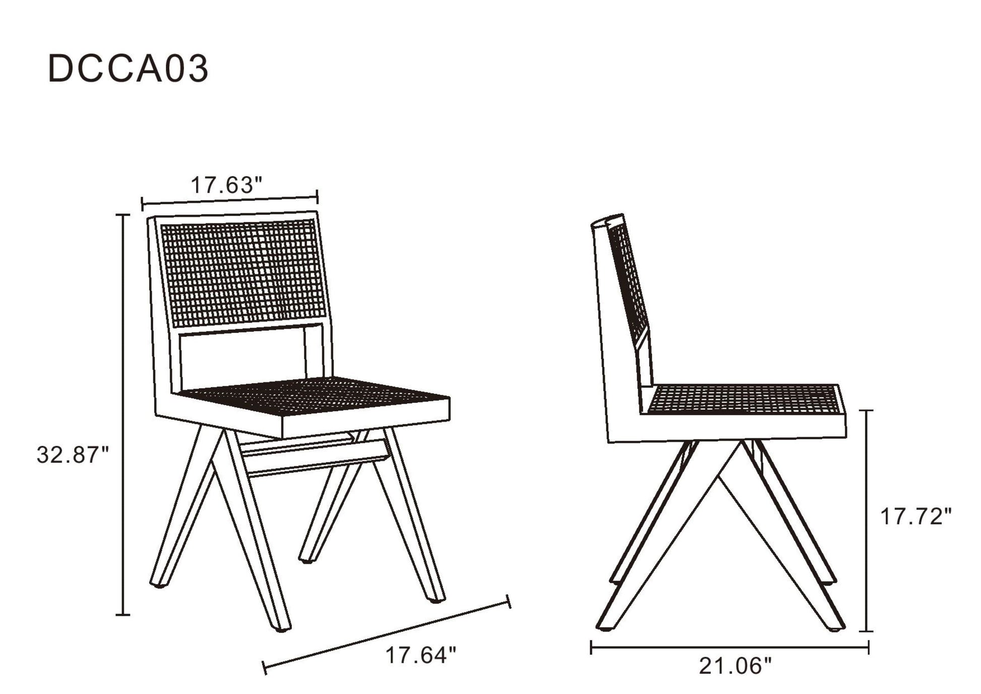 Smart, chic, with a bold look, the Hamlet Dining Chair has it all. A distinguished a-frame style base holds a clean lined rectangular seat with wood rattan detailing. The matching backrest offers a slight curve for added comfort and support. The Hamlet will make the perfect addition to any dining space, living room, or even the office. Dimensions: 17.64 in. Length, 32.87 in. Height, 21.06 in. Depth.