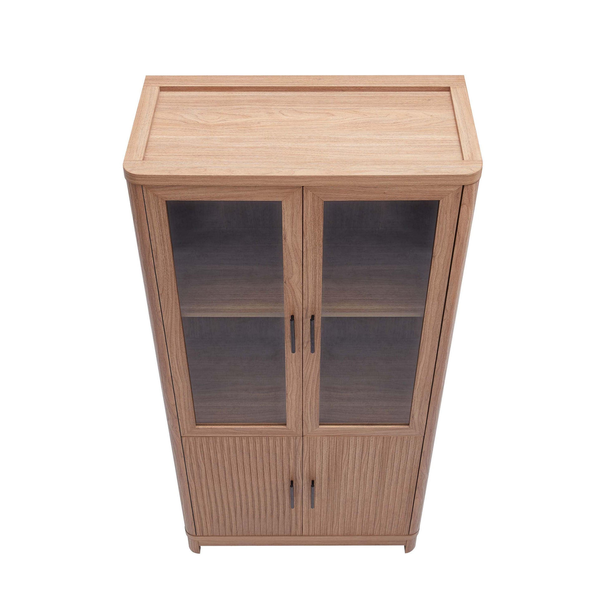 Manhattan Comfort Mid Century- Modern Jodie Bookcase with Adjustable Shelves and Tempered Glass Doors in Maple BC001-MP