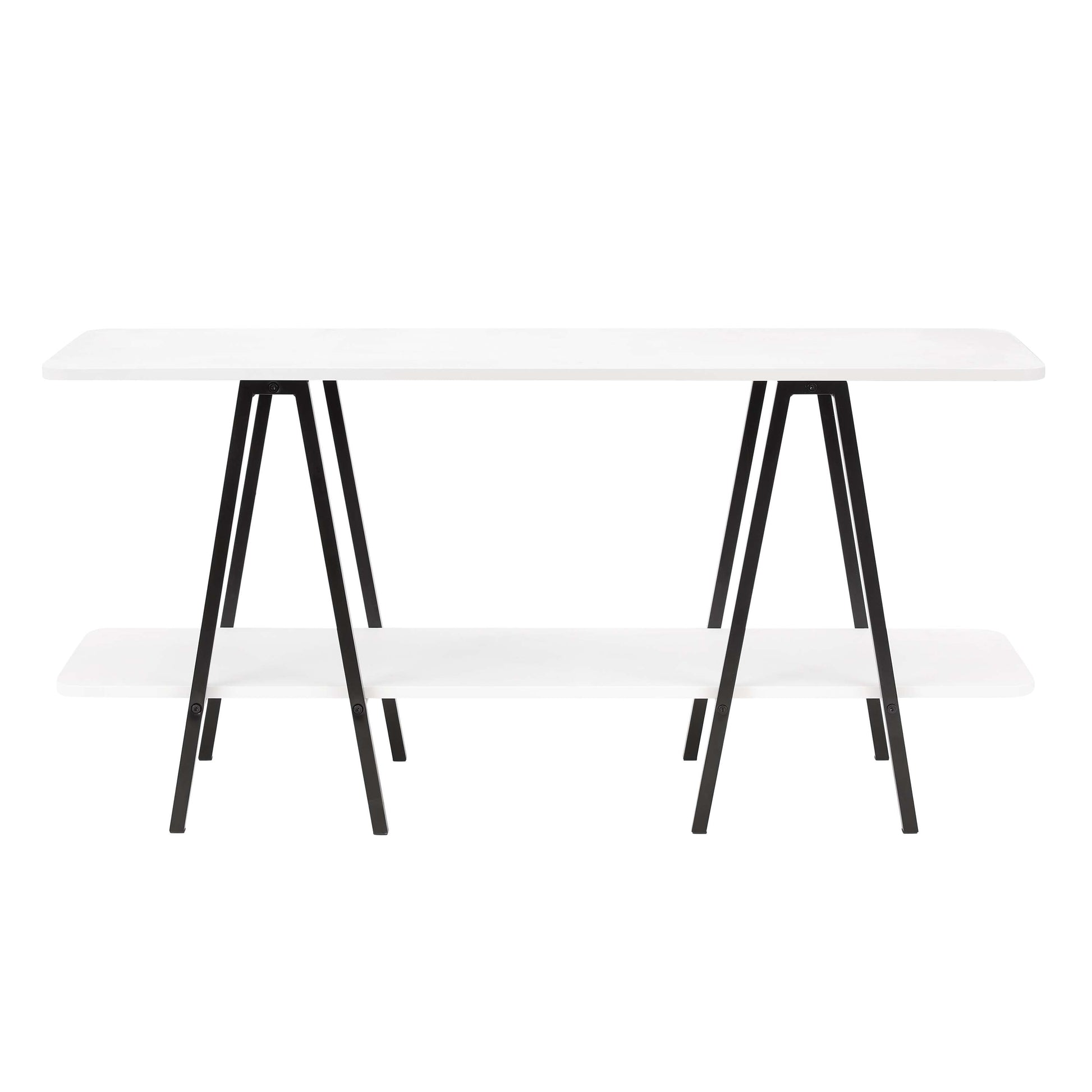 The Celine console table takes your living room style up a notch and impresses guests by adding visual interest to your space. With its two-tiered design and steel legs, it easily blends into a modern contemporary space and slides behind a sofa or sits in an entryway, making it both a stylish and functional addition. Add a tray for keys, a lamp, framed family photos up top, and your favorite coffee table books or decorative accents to make it your own. Dimensions: 47.24 in. Length, 22.52 in. Height, 13.97 in. Depth.