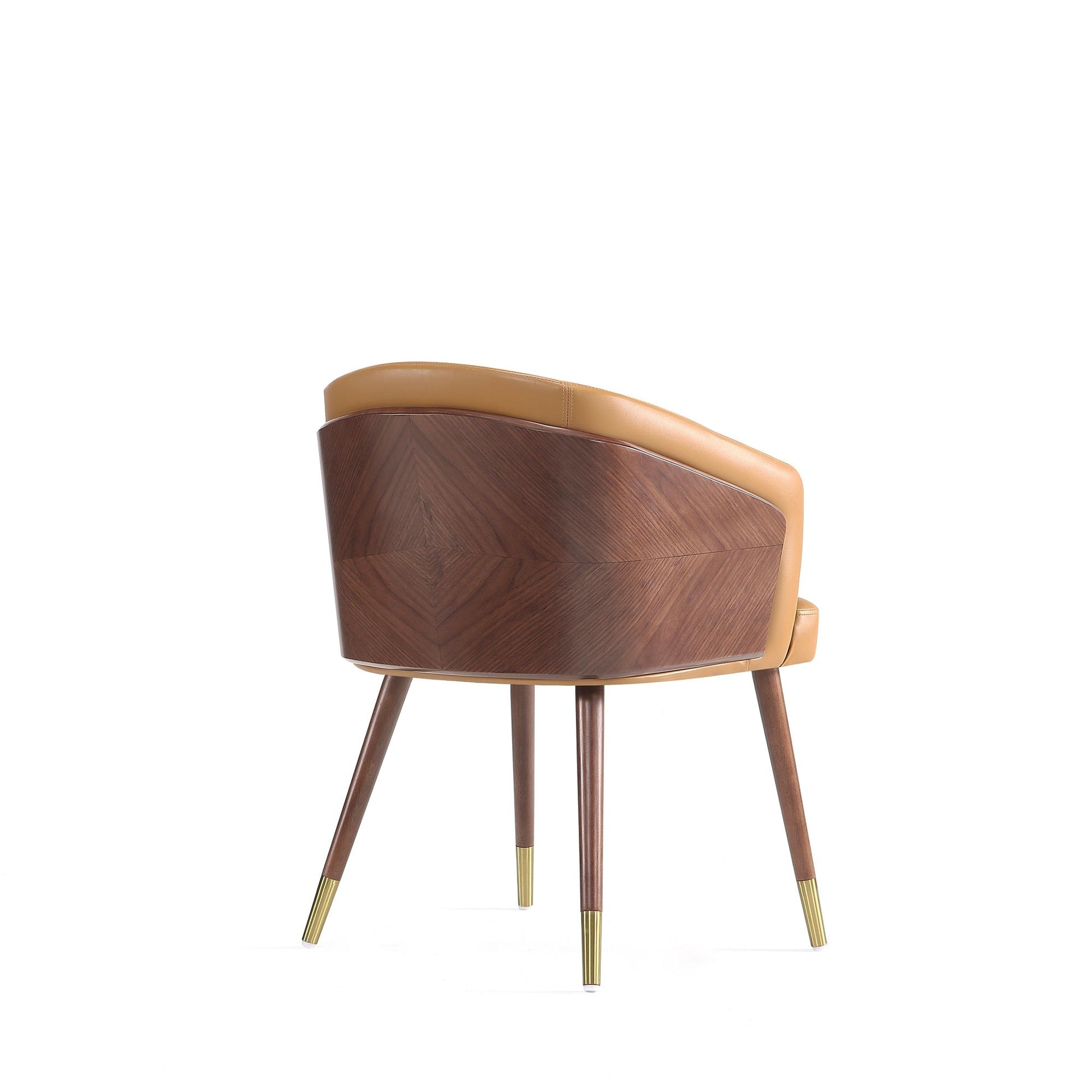 Manhattan Comfort Modern Raya Dining Chair Upholstered in Leatherette with Beech Wood Back and Solid Wood Legs in Walnut and Camal- Set of 2 2-DC082-CL