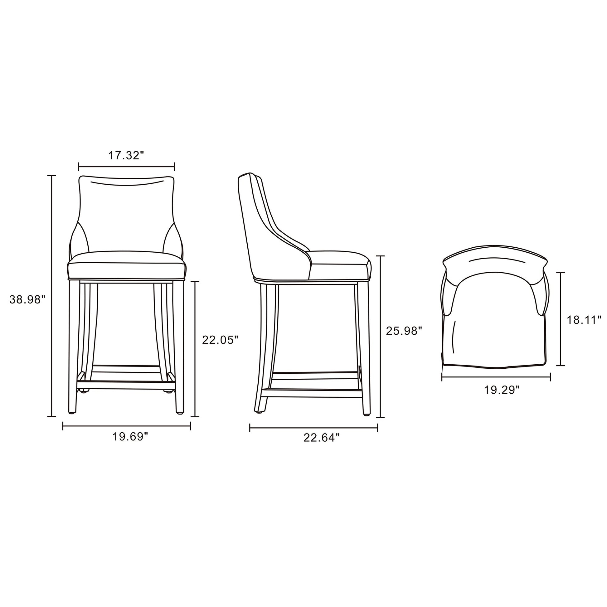 Dimensions for the barstool are approximately 22.64 in. Length, 42.13 in. Height, and 19.69 in. Depth, while the counter stool measures around 22.64 in. Length, 38.98 in. Height, and 19.69 in. Depth, making them ideal for various settings. Upgrade your seating solution today and enjoy the luxurious comfort and timeless design that the Manhattan Comfort Shubert collection has to offer.