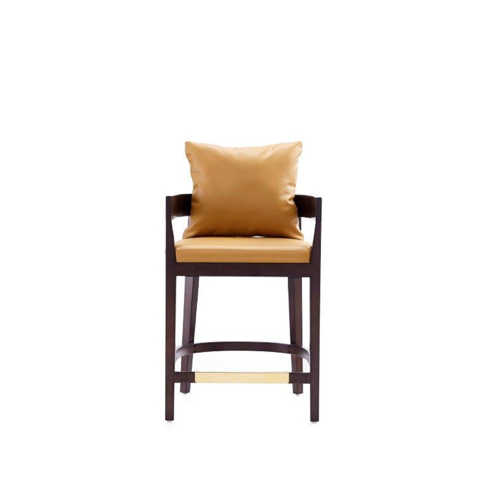Elevate your dining experience with these stylish counter height bar stools, designed to bring a touch of modern elegance to your kitchen islands and bar tops. Crafted with solid wood legs, each stool features a wide cushioned seat and back that ensures comfort during long gatherings or casual meals. The clean-lined aesthetic seamlessly blends with both contemporary and upscale decor, making it a versatile addition to any home.