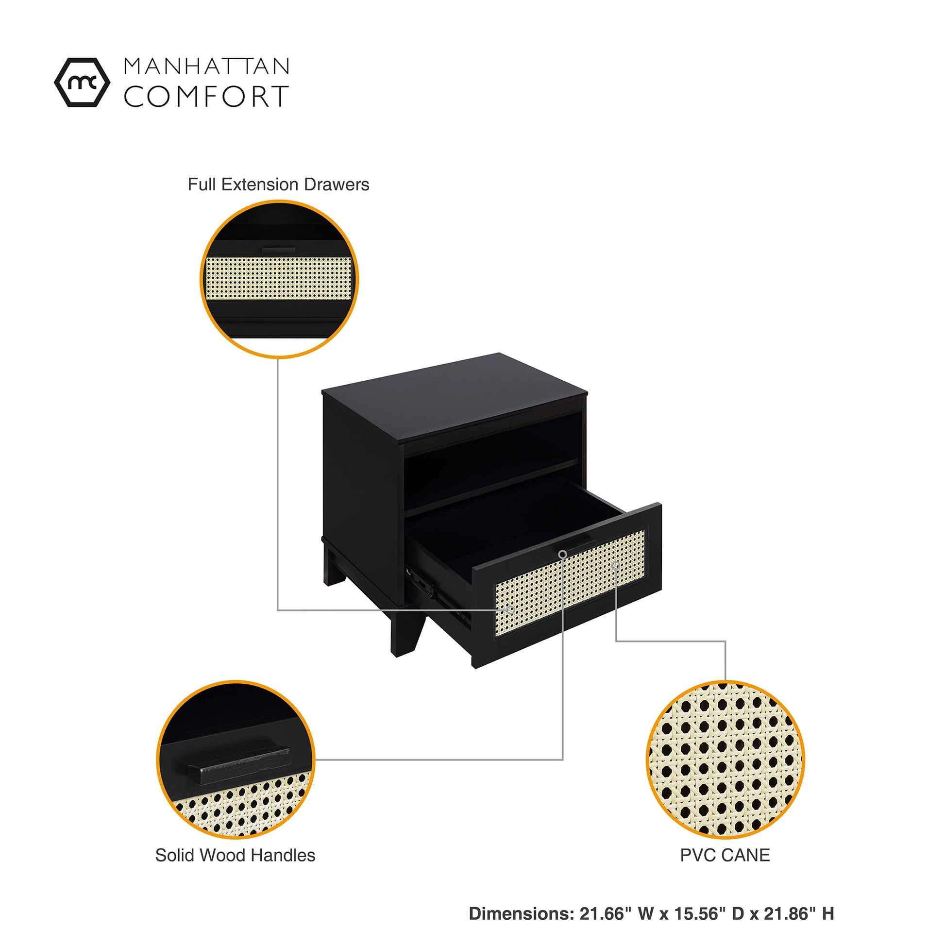 Manhattan Comfort Sheridan Modern Cane 4-Piece Set: Bookcase, TV Stand, Sideboard, End Table in Black 4-3456GLF-BK