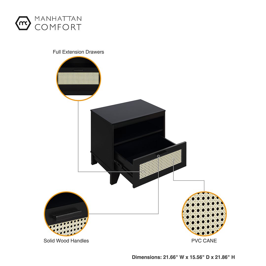 Manhattan Comfort Sheridan Modern Cane 4-Piece Set: Bookcase, TV Stand, Sideboard, Nightstand in Black