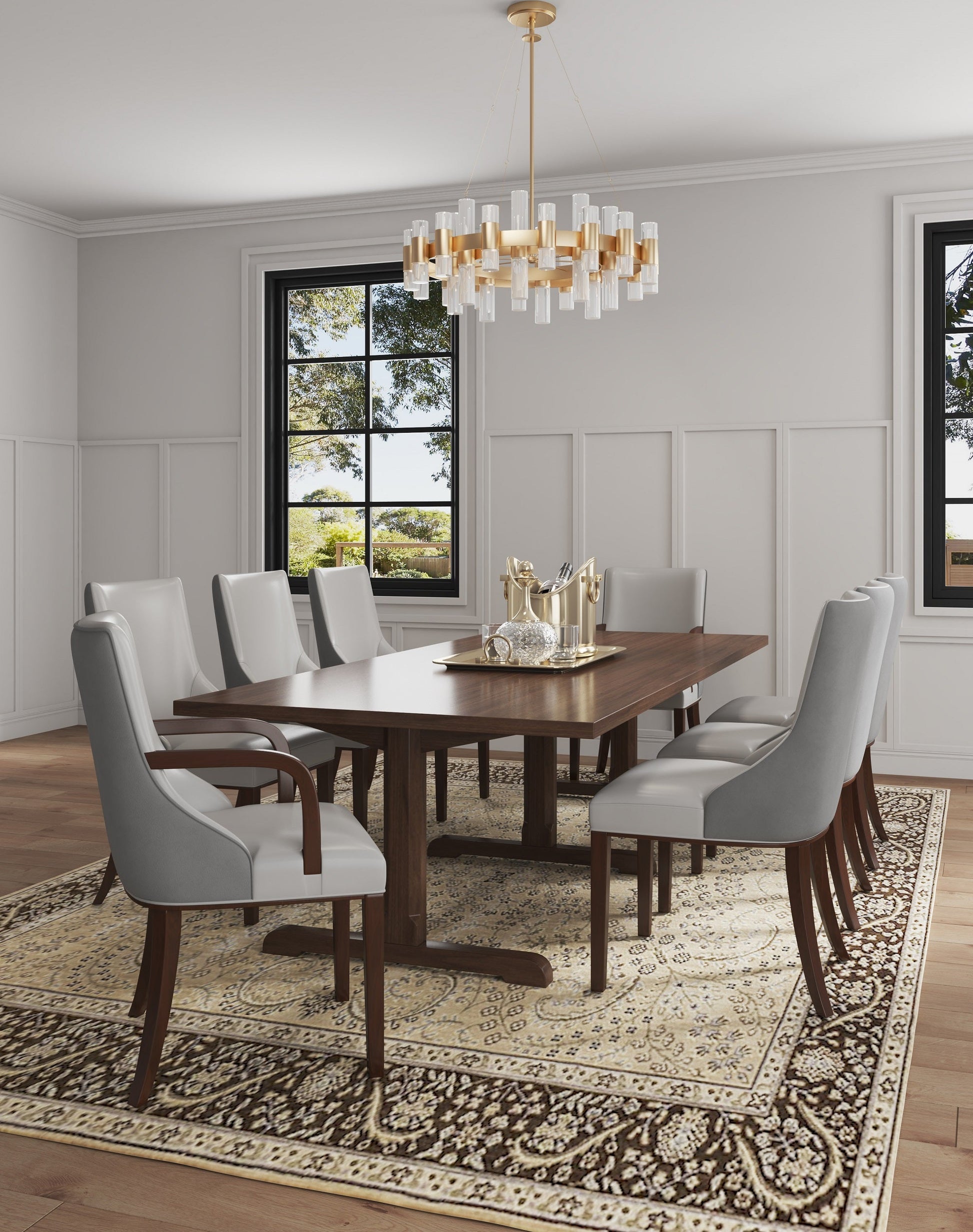 Manhattan Comfort Shubert 8-Piece Modern Faux Leather and Velvet Dining Chair Set in Light Grey 8-DC055AR-LG