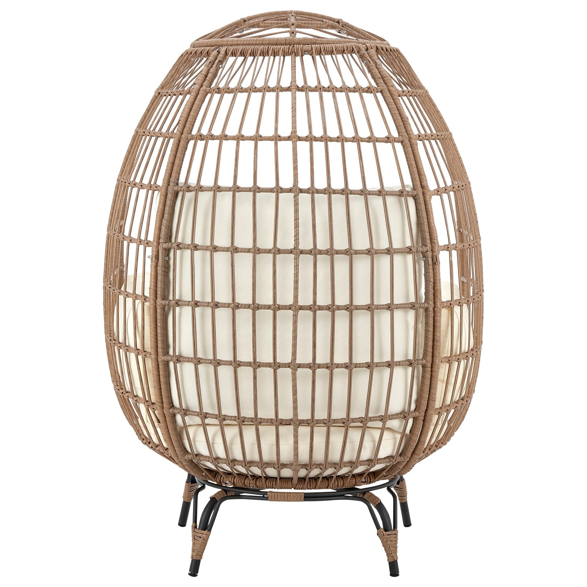 Manhattan Comfort Spezia Freestanding Steel and Rattan Outdoor Egg Chair with Cushions in Cream OD-HC002-CR