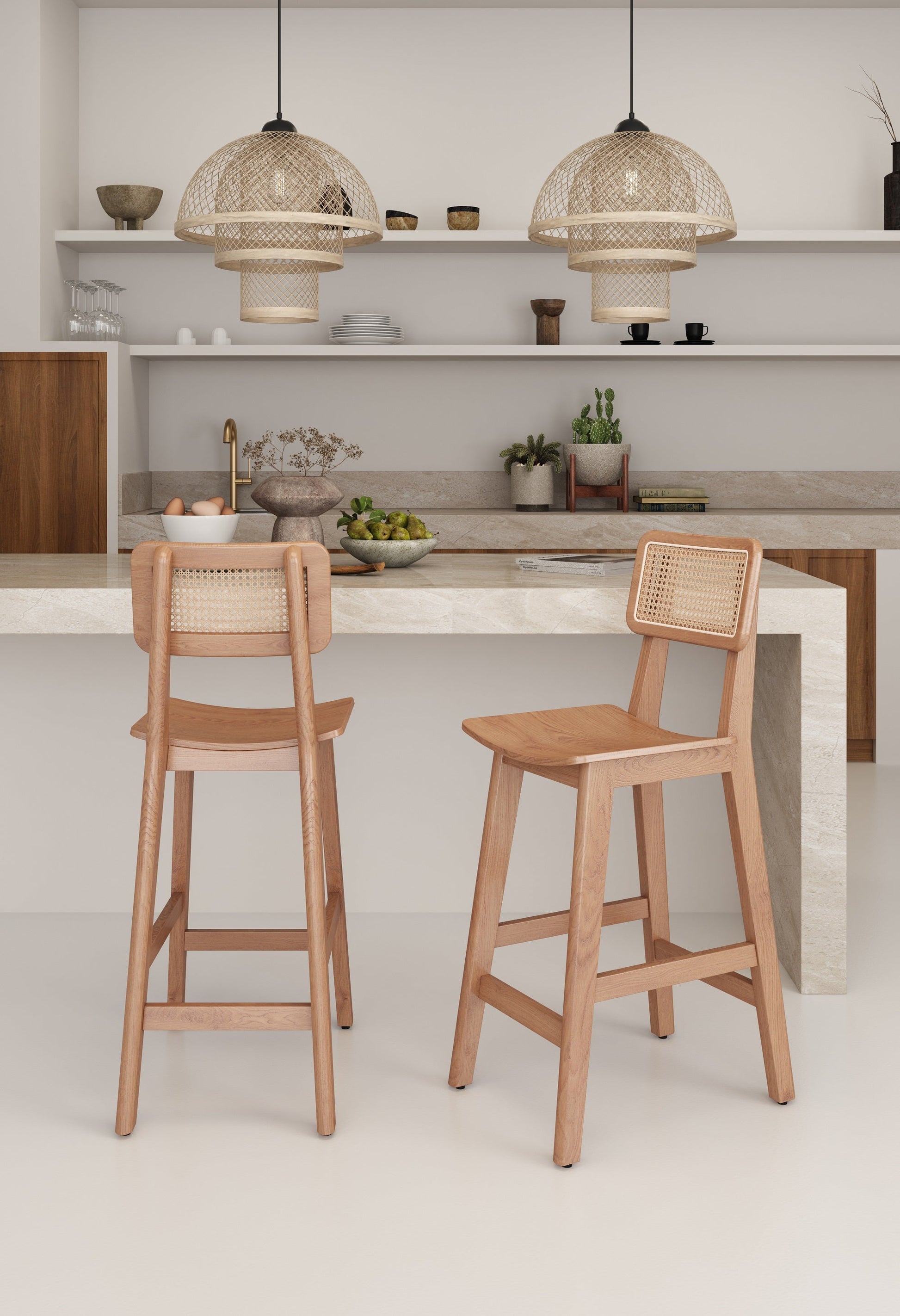 Introducing the perfect blend of style and comfort, this counter stool effortlessly elevates your dining space with its contemporary design. Crafted from solid wood, it features a sleek, generous, and contoured seat that ensures a comfortable experience for you and your guests. The stability stretcher not only enhances durability but also doubles as a footrest, providing added comfort during meals or gatherings.
