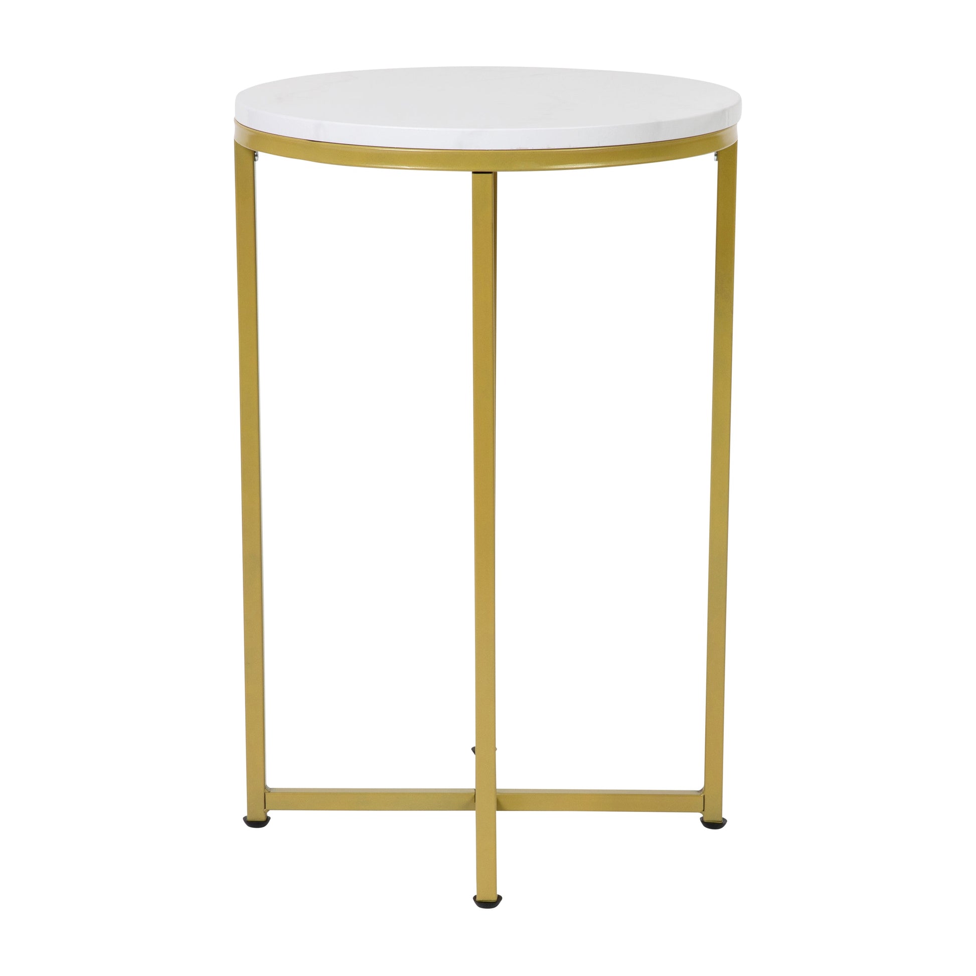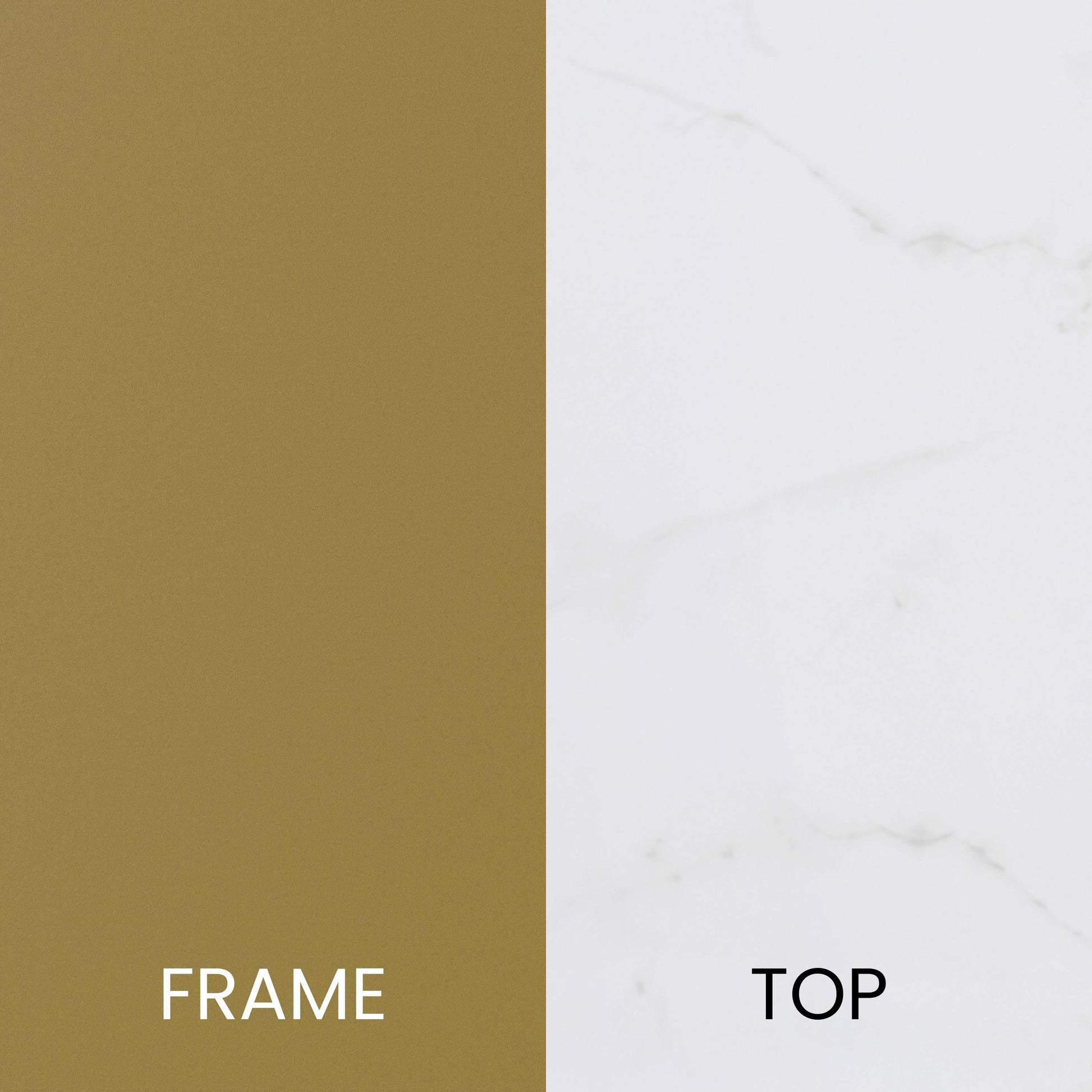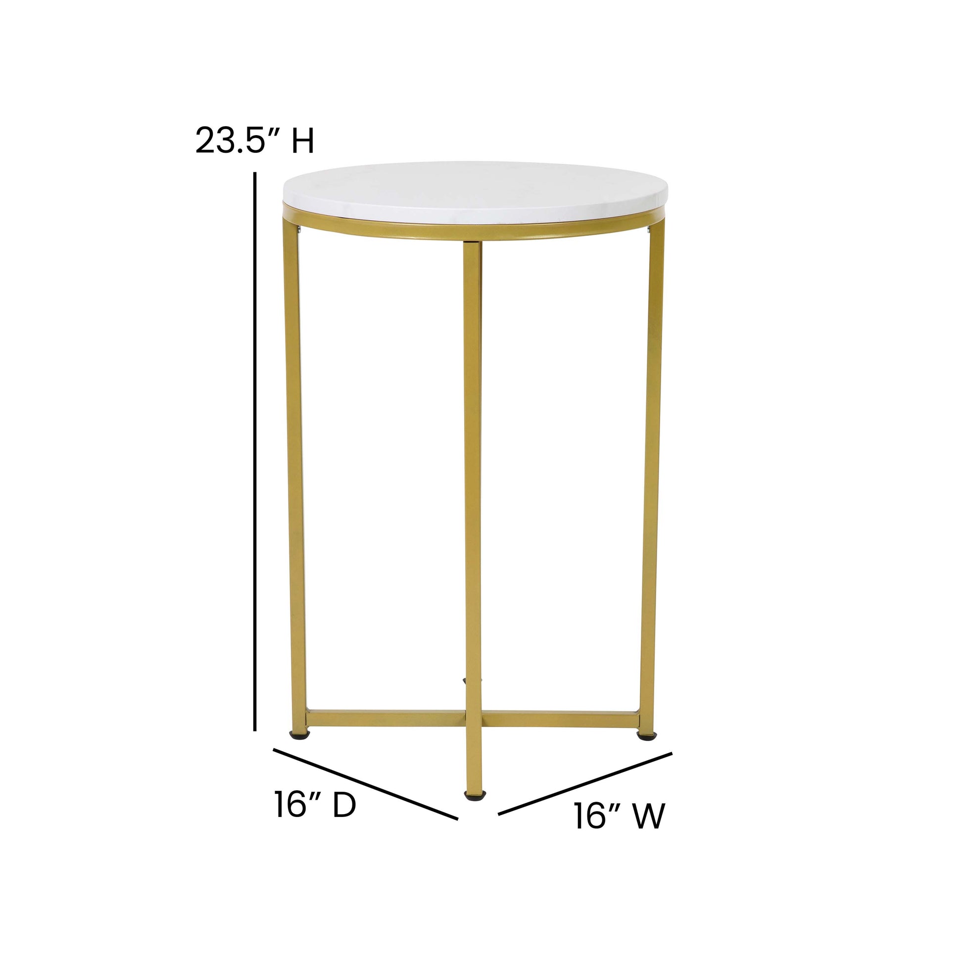 Hampstead Collection End Table - Modern White Marble Finish Accent Table with Crisscross Brushed Gold Frame Dimensions: 16"W x 16"D x 23.5"H