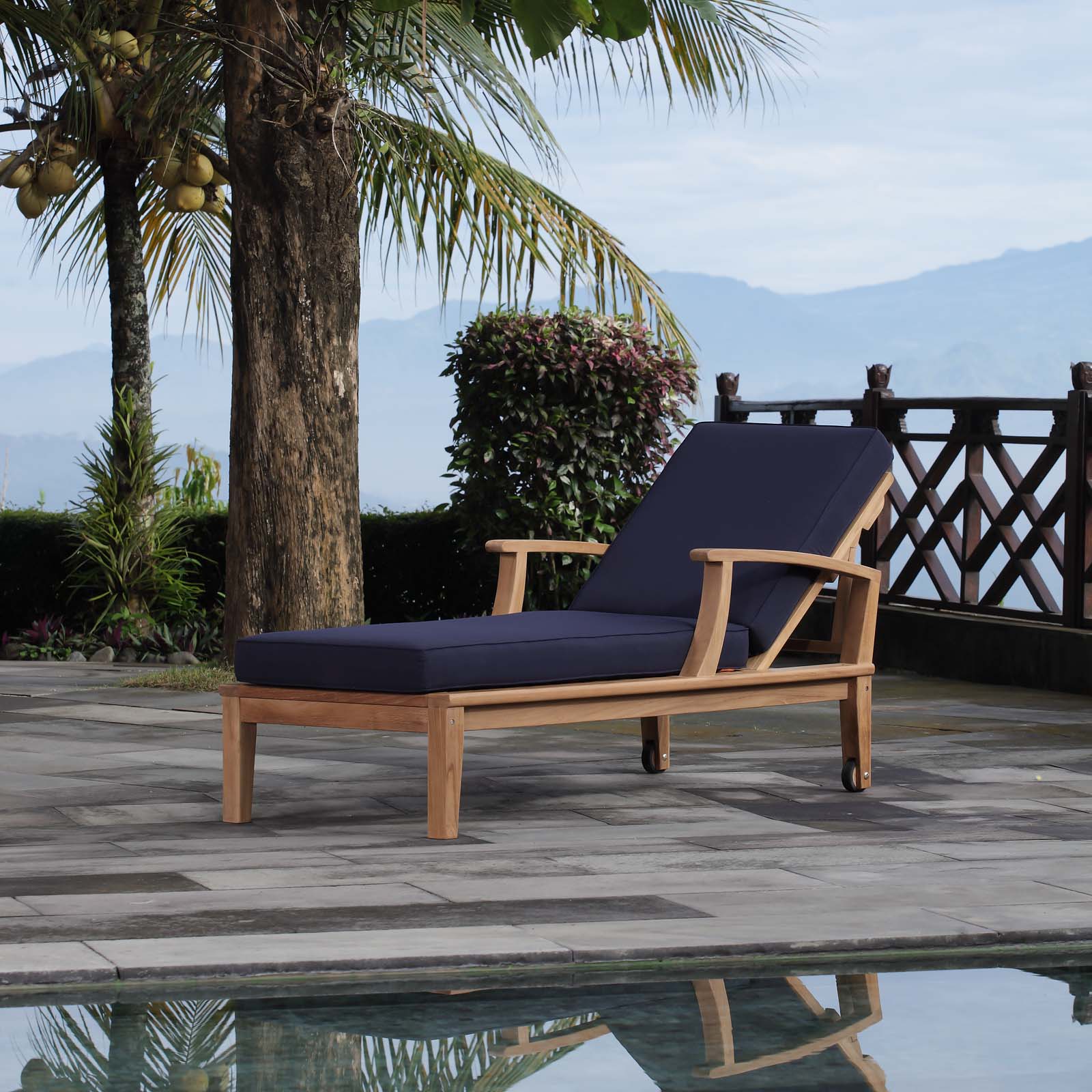 Marina Outdoor Patio Teak Single Chaise Natural Navy EEI-1151-NAT-NAV-SET