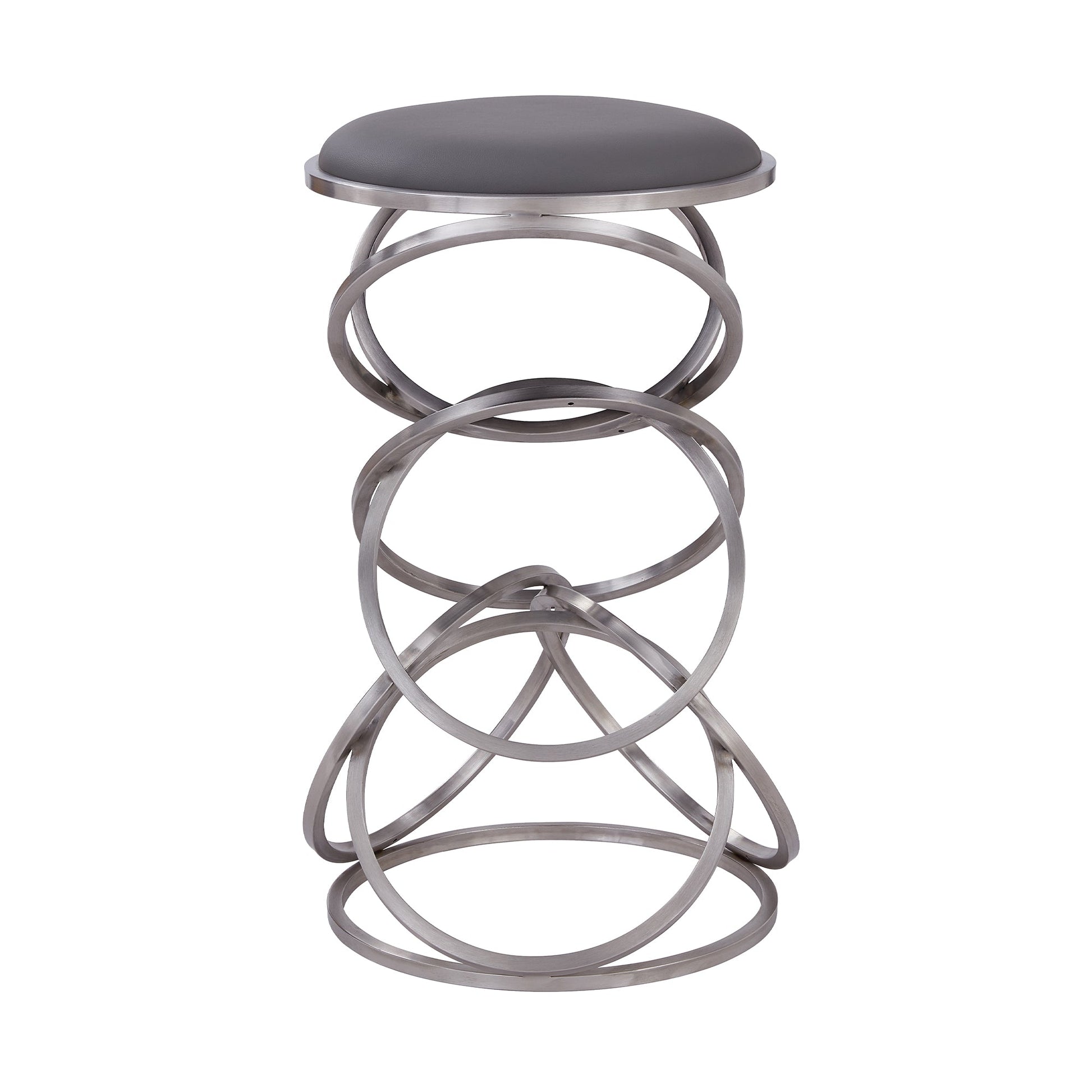 The Medley Backless Bar Height Barstool may not be your typical barstool, but don't let its stature fool you; this barstool can, and will, make for an addition to your small kitchen or bar. Suited for a smaller or shorter space, the Medley will fit just where you need it to. The backless design allows you to save space vertically, allowing even possible storage underneath a bar when it's not being used. But don't think because of its size the Medley lacks on comfort; the Gray Faux Leather upholstery not only looks great but offers a rather comfortable place to rest, and the Brushed Stainless Steel finish everywhere else provides the proper structure and style for the small area in your home. This Armen Living Medley Barstool comes in 26" counter or 30" bar height.