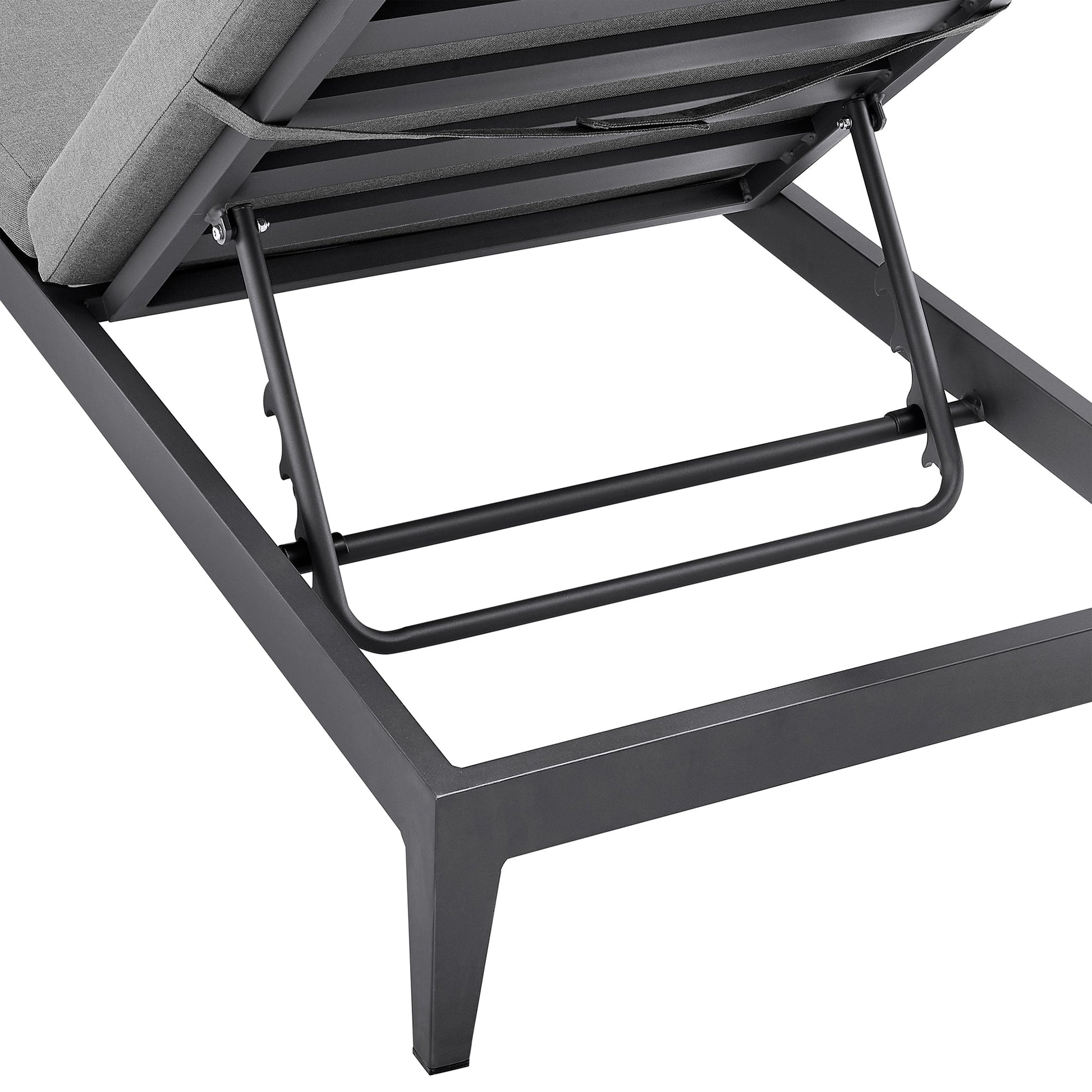 Lay out and relax with the Menorca outdoor chaise lounge chair from Armen Living. Featuring a sleek and minimal silhouette, the chaise lounge chair serves as a casual and stylish addition to your outdoor or patio space. The simple addition can make any outdoor terrace, porch, backyard, poolside, garden, or deck of any size, a relaxing destination. The high-density foam cushion features beautiful dark gray upholstery and a zip closure that allows for easy removal for cleaning. Lightweight and durable aluminum framework make the Menorca lounge chair easily portable so you can follow the sun or shade for an enjoyable outdoor experience. This beautiful chaise lounge chair is the perfect piece of outdoor furniture, and the aluminum construction also features a multi-layer powder coating for further effective protection from UV, weather, rust, and everyday wear, and tear. The Menorca has 5 convenient reclining positions. This chic outdoor chaise lounge chair is a staple when it comes to outdoor patio furniture, it’s functional, stylish, and most importantly durable! The Menorca features a dark gray finish that compliments the dark gray upholstery, it supports up to 330lbs and has a seat height of 13 inches.