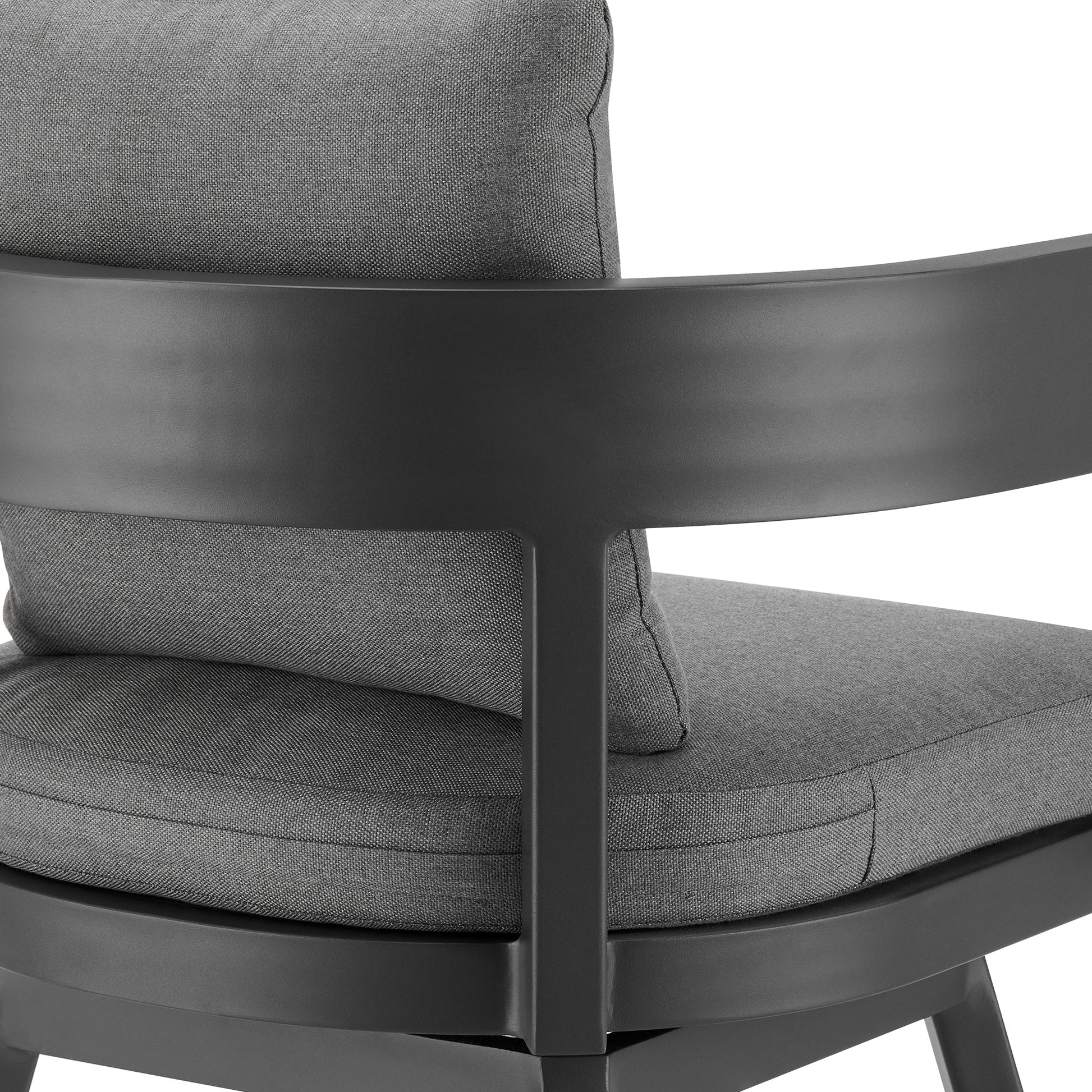 Menorca Outdoor Patio Swivel Bar Stool in Aluminum with Gray Cushions