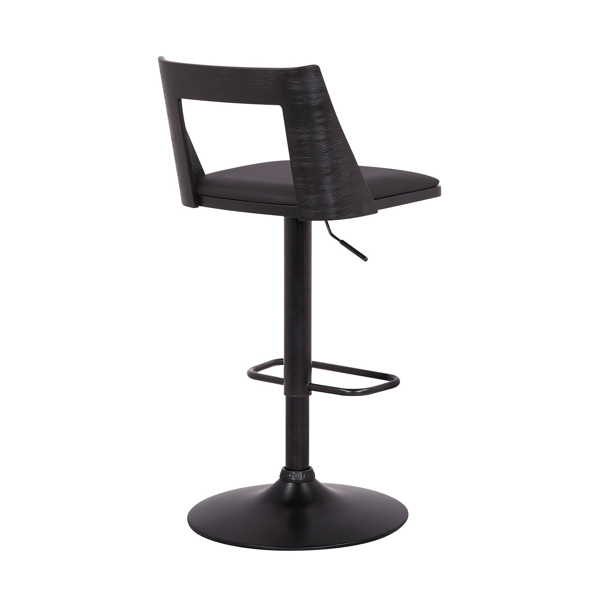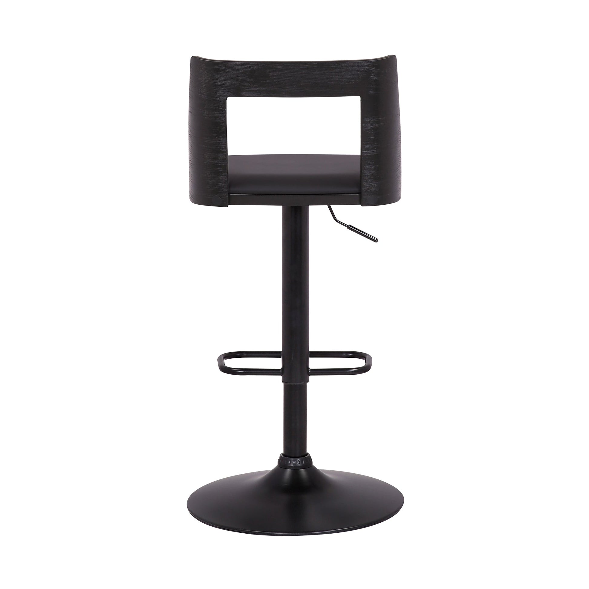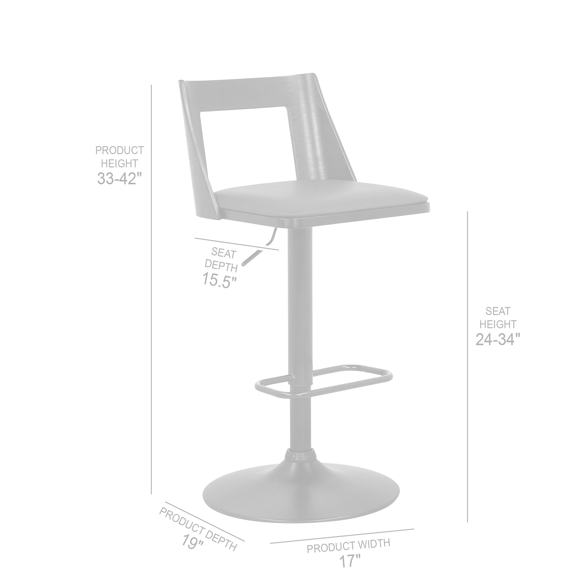 Milan Adjustable Swivel Faux Leather and Wood Bar Stool with Black Base