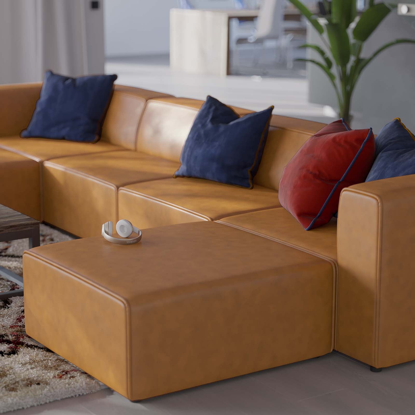 Kick back and relax with the Mingle Vegan Leather 4-Piece Sofa and 2 Ottomans Set. Designed to wash away the hindrances that obstruct visual space, this four-seater sofa and ottomans come expansively designed with generous seating and dense foam padding that allows for just the right amount of giving. Mingle easily positions according to the needs of the moment and features rich vegan leather upholstery with elegant piping and plastic legs for steady support. Host animated living or lounge room get-togethers with a modular sectional seating assortment perfect for contemporary modern décors.