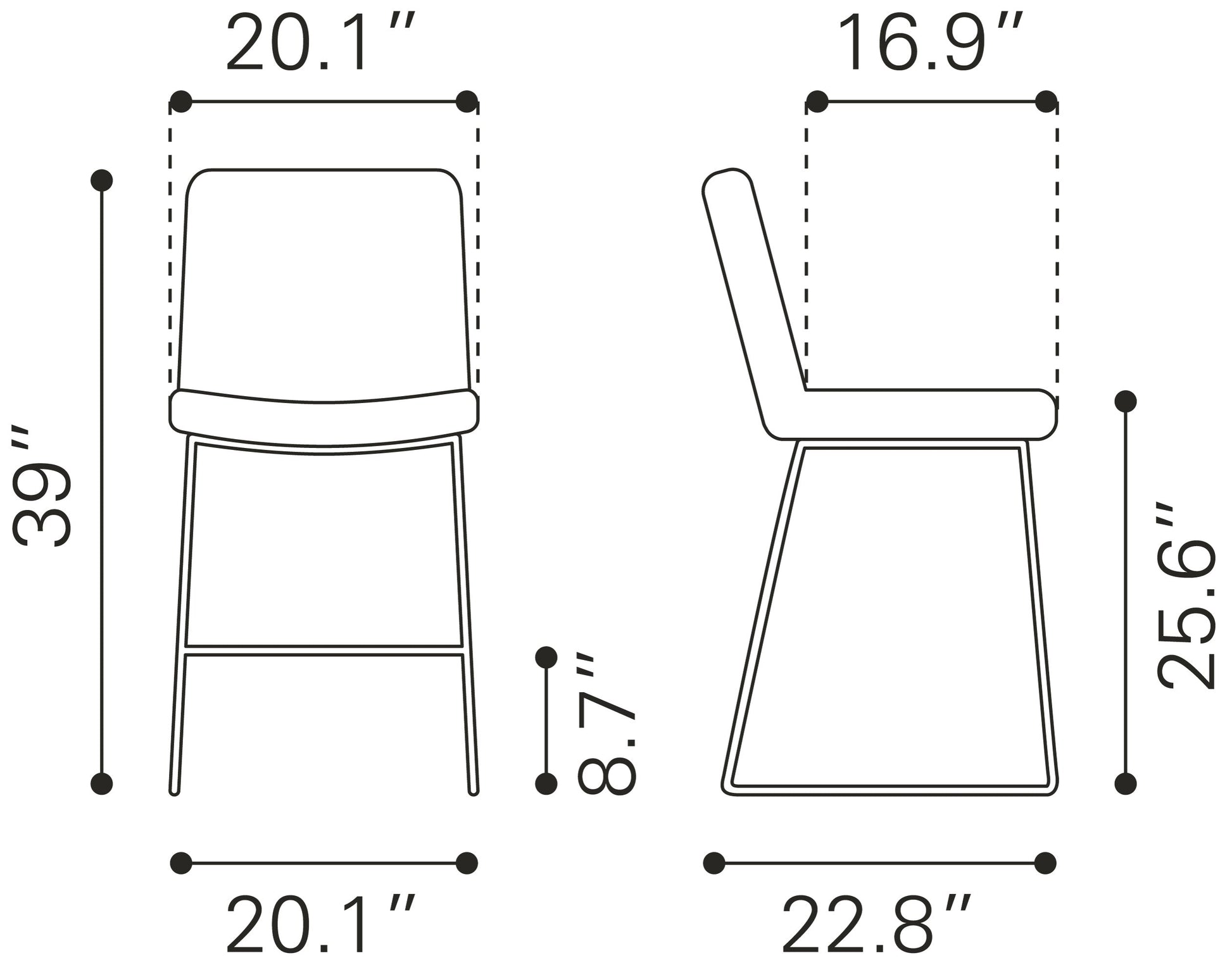 The Mode counter stool has durable vinyl wrapped seat on a powder coated steel frame. This versatile chair fits any space, any style: a hip modern restaurant, sleek kitchen, or cool hotel bar.