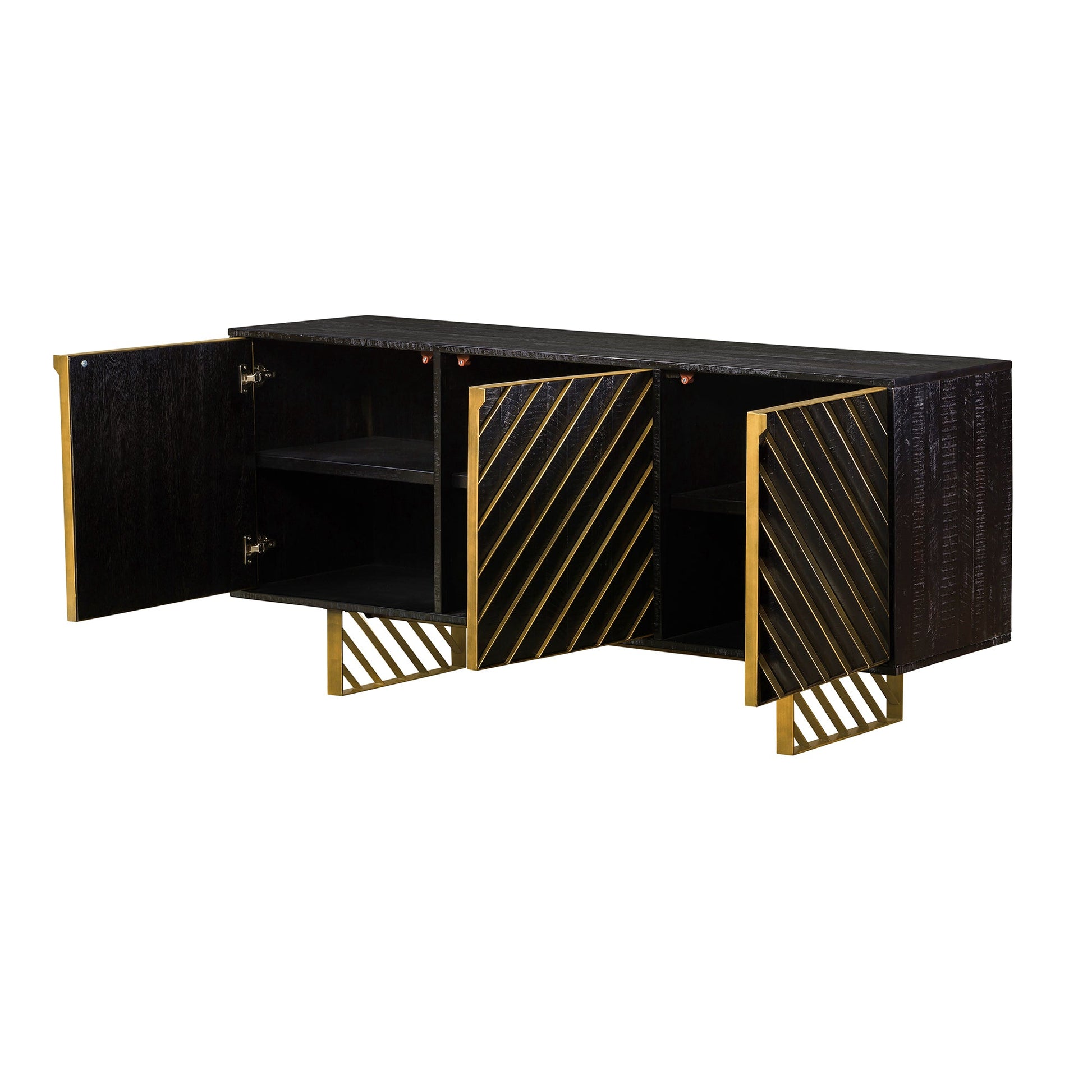 Monaco Rectangular Black Wood Sideboard with Antique Brass Accent