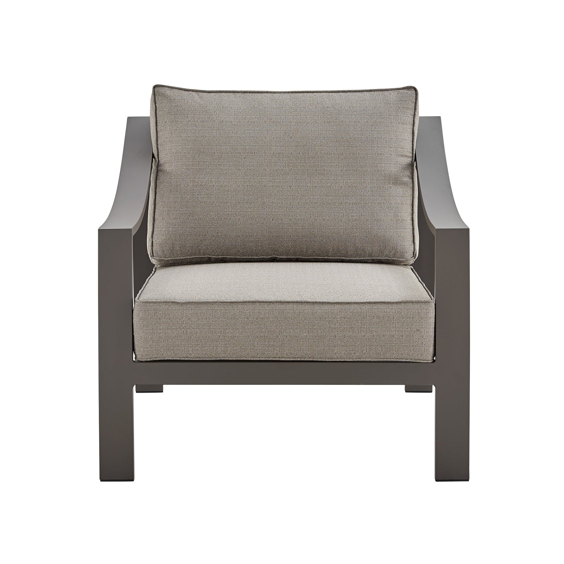 Bring the comforts of your living room outdoors with the Mongo 4 Piece Outdoor Patio Furniture Set in Aluminum with Cushions. This 4-piece outdoor furniture set features a 3-seater sofa, 2 club chairs and 1 rectangular coffee table. Constructed from Aluminum and featuring weather resistant upholstery, this outside furniture is a perfect addition to your home or apartment. Aluminum furniture cannot rust. This is especially beneficial in areas where moisture is present, making it a premium choice among residents of coastal cities or regions with high humidity. Polyester is not permeated easily by water. Polyester resists the types of molds and mildews that will take root in fabrics made of natural fibers. This means the patio furniture will have a longer life, and the zipper closure makes it easy to remove the covers and throw them into the wash! Minimal maintenance is required for the aluminum frames as well. Often, using a typical garden hose to rinse off the patio furniture will do. For more stubborn residue, a little warm water and soap will usually suffice. The slope arm style of the sofa and armchairs creates a sleek silhouette and the durability of the materials ensure that this outdoor patio furniture will last for many years to come. The Mongo 4-piece conversation set can be used in your backyard, patio, pool area, or screened in porch. This set is available in a brown finish with brown cushions or a black finish with gray cushions.