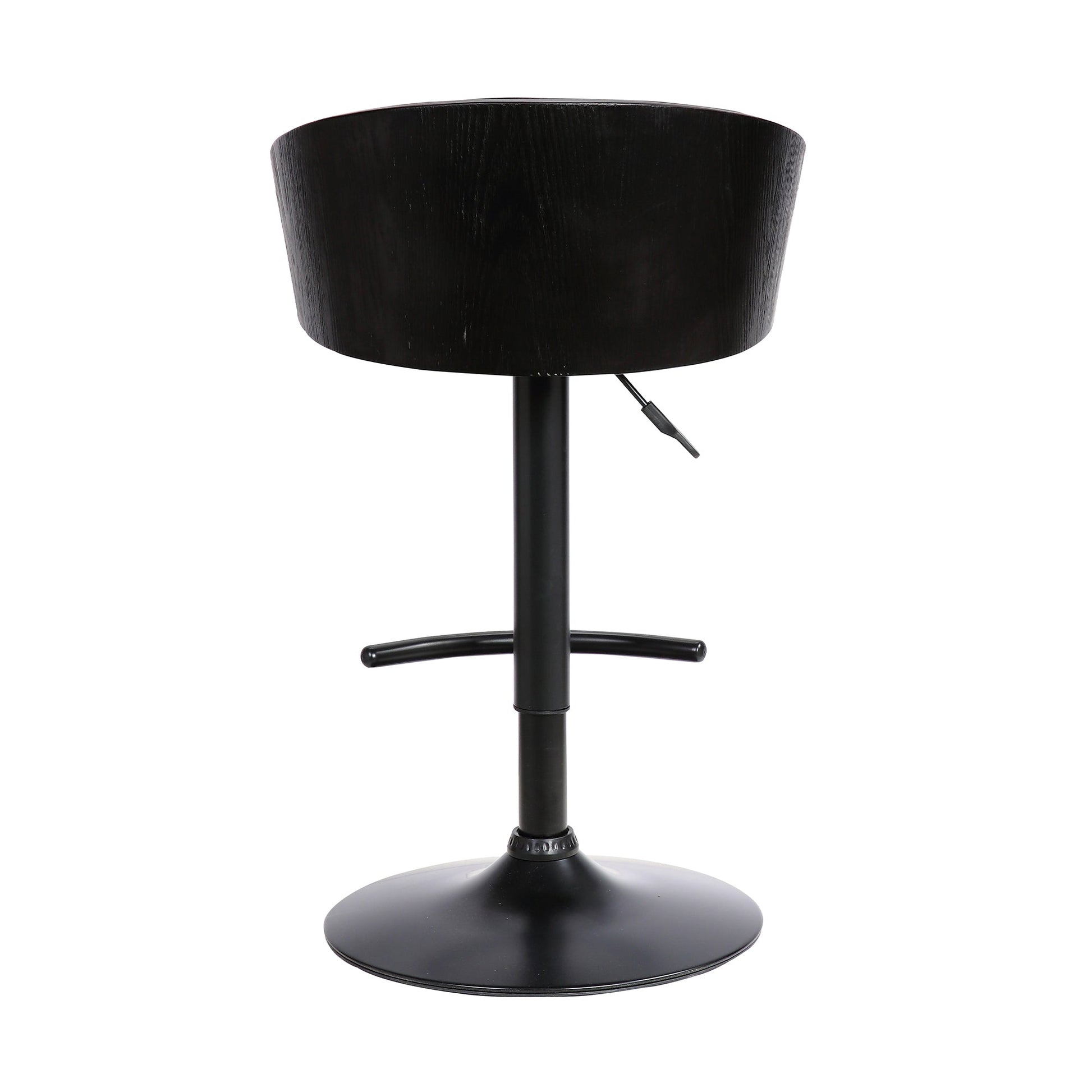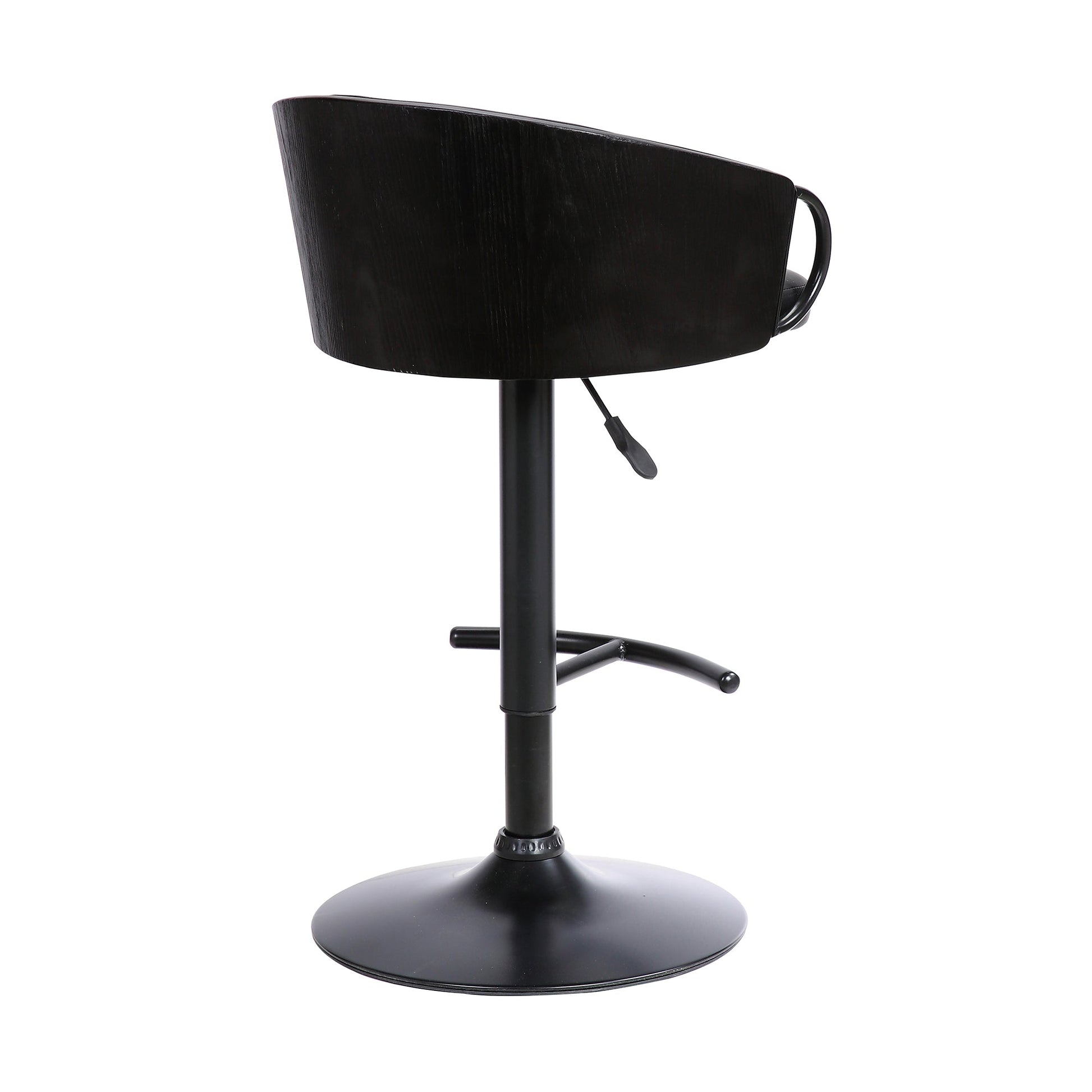 Montego Adjustable Black Faux Leather Swivel Barstool in Black Powder Coated Finish