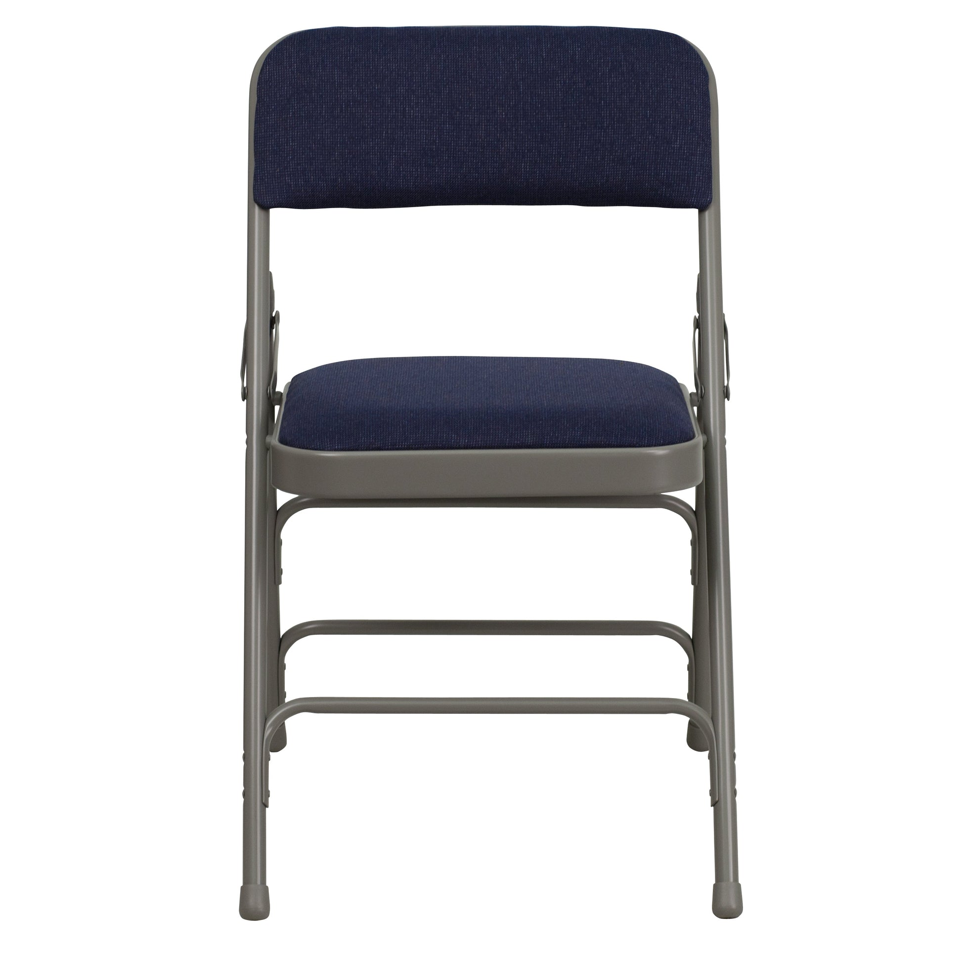2 Pack HERCULES Series Curved Triple Braced & Double Hinged Navy Fabric Metal Folding Chair Dimensions: 18.5"W x 19"D x 30"H