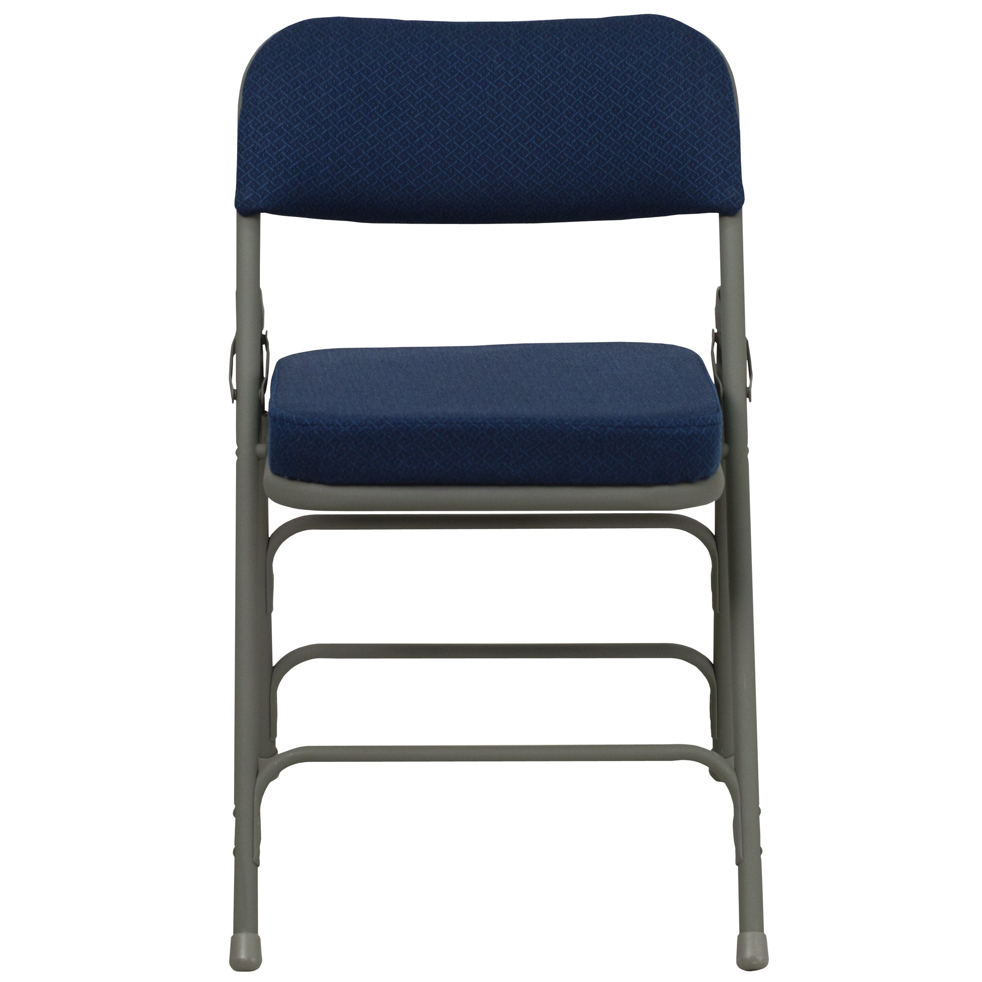 2 Pack HERCULES Series Premium Curved Triple Braced & Double Hinged Navy Fabric Metal Folding Chair Dimensions: 18"W x 19"D x 29.5"H