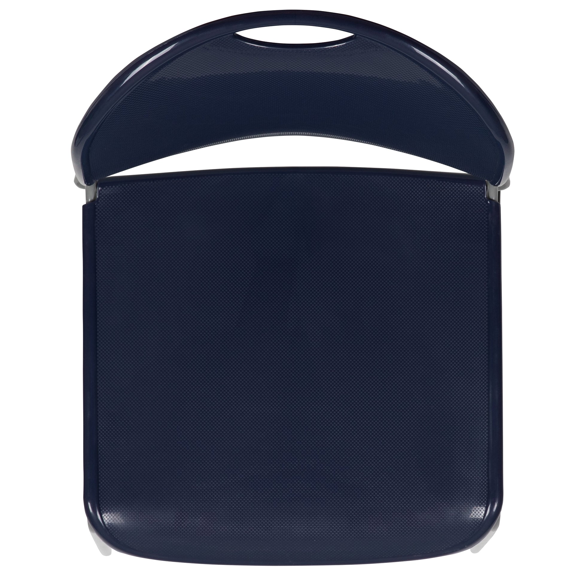 HERCULES Series 880 lb. Capacity Navy Ultra-Compact Stack Chair with Silver Powder Coated Frame Dimensions: 19"W x 21"D x 32"H