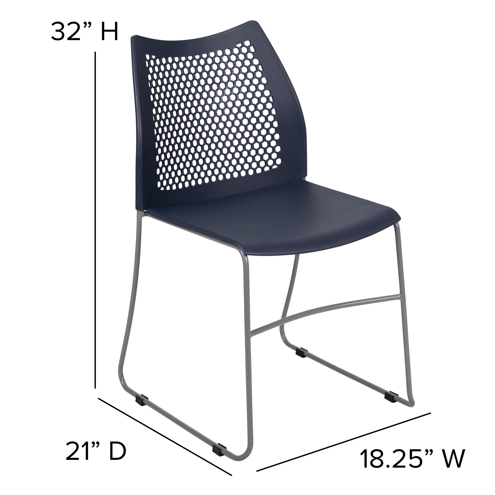 HERCULES Series 661 lb. Capacity Navy Stack Chair with Air-Vent Back and Gray Powder Coated Sled Base Dimensions: 18.25"W x 21"D x 32"H