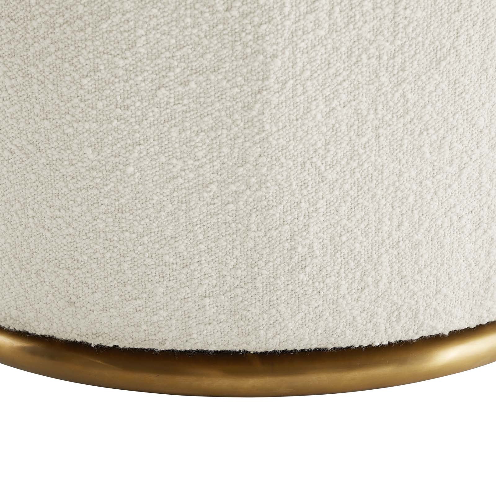 Relax amidst trending style and modern comfort with the Nora Boucle Upholstered Swivel Accent Chair. Bringing appreciated texture to your living space, entryway, bedroom, or other seating area, this swivel chair is upholstered in a beautiful boucle fabric made with looped yarns to create its charming nubby texture. Dense foam padding and a spring support system offer a premium seating experience. Resting on a gold metal swivel base, this accent chair effortlessly rotates to suit the needs of the moment. Weight Capacity: 331 lbs.
