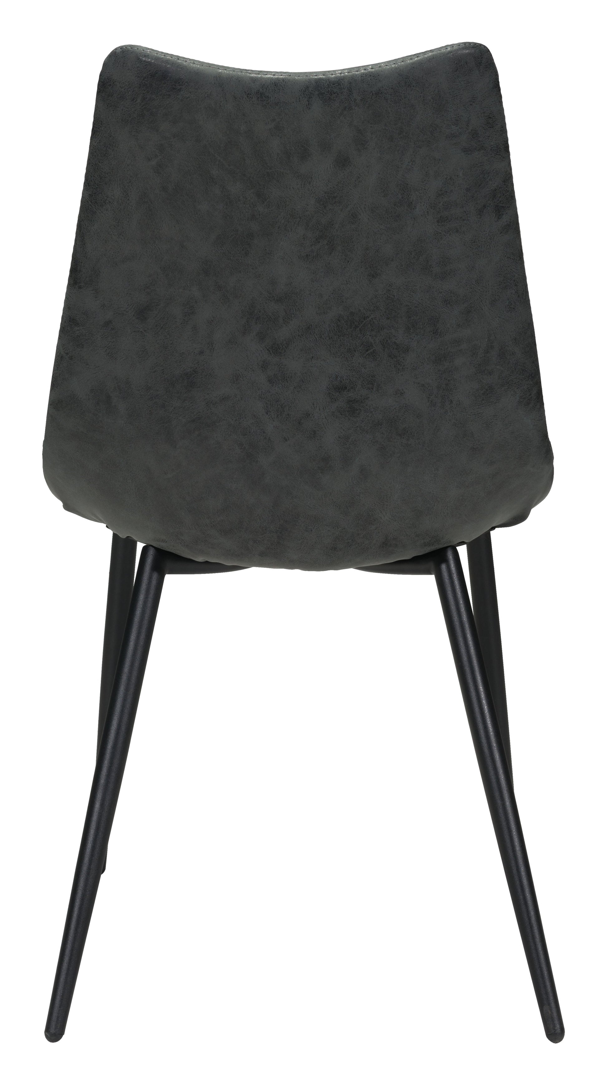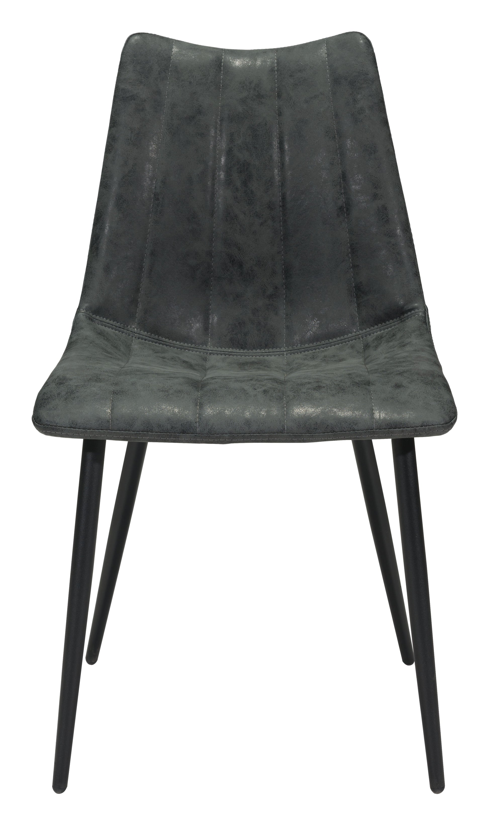 This scoop style chair in vintage black faux leather is perfect for a casual dining space. Channel tufting and top stitching are the designer details that make it a stand out piece. Molded back and seat give it the comfort that will keep you lingering around the table. Also available in brown faux leather.