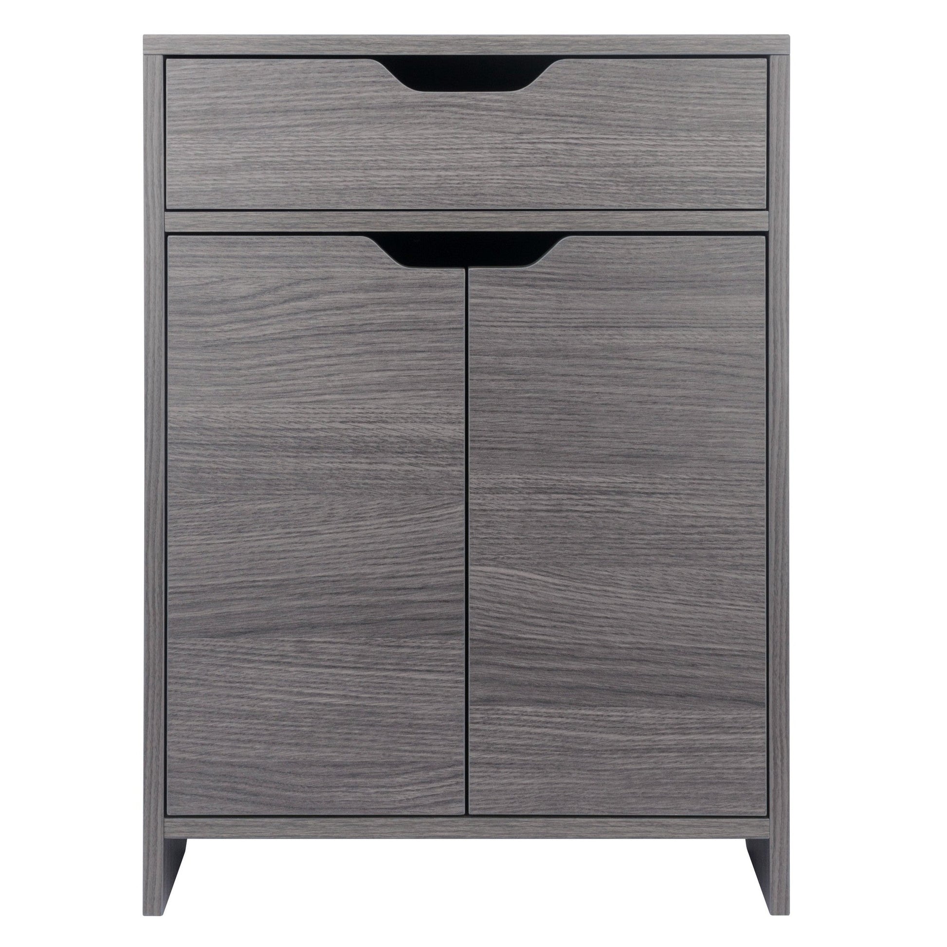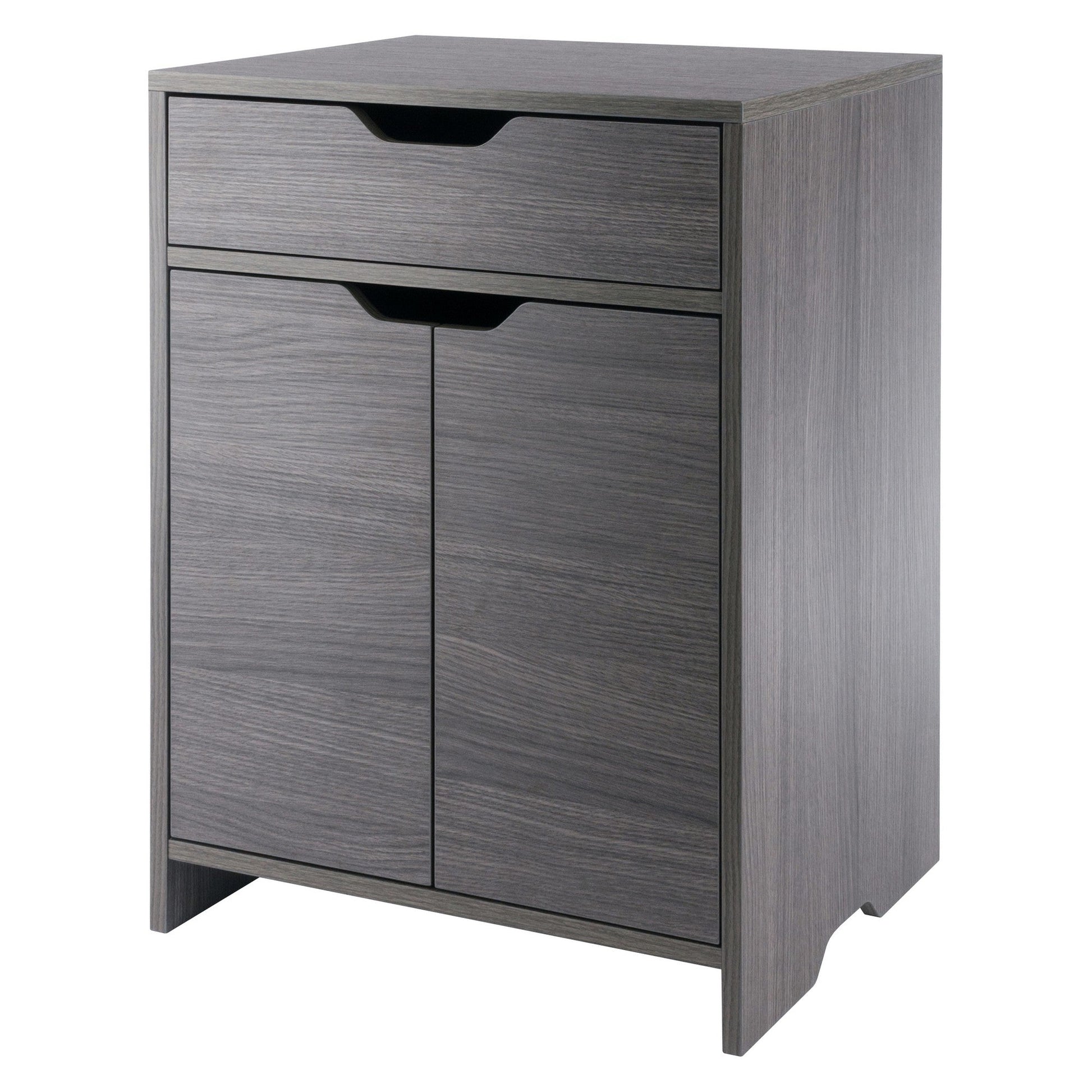 The Winsome Wood Nova 1-Drawer Storage Cabinet offers a streamlined way to transform any room where you need stylish, easy-access storage. This freestanding cabinet is ideal in a home office for keeping office supplies while doubling as a printer stand. In a garage or shed, it's a great organizer for tools and gardening equipment. Or use it as a side table in a child's bedroom to reduce the clutter of toys, electronics, and sports gear. The flexibility of the shelf makes it adaptable to a variety of storage needs as you can adjust the height or simply remove it. The cut-out handles and a wood-grained charcoal finish provide a contemporary, simple look. For additional storage, combine with other organizers from the Winsome Nova collection. Made of sturdy composite wood, this cabinet conveniently ships in 1 box with all the hardware needed for assembly. Replacement part request can be submitted directly to the manufacturer, with sales receipt, within 60 days from date of purchase.