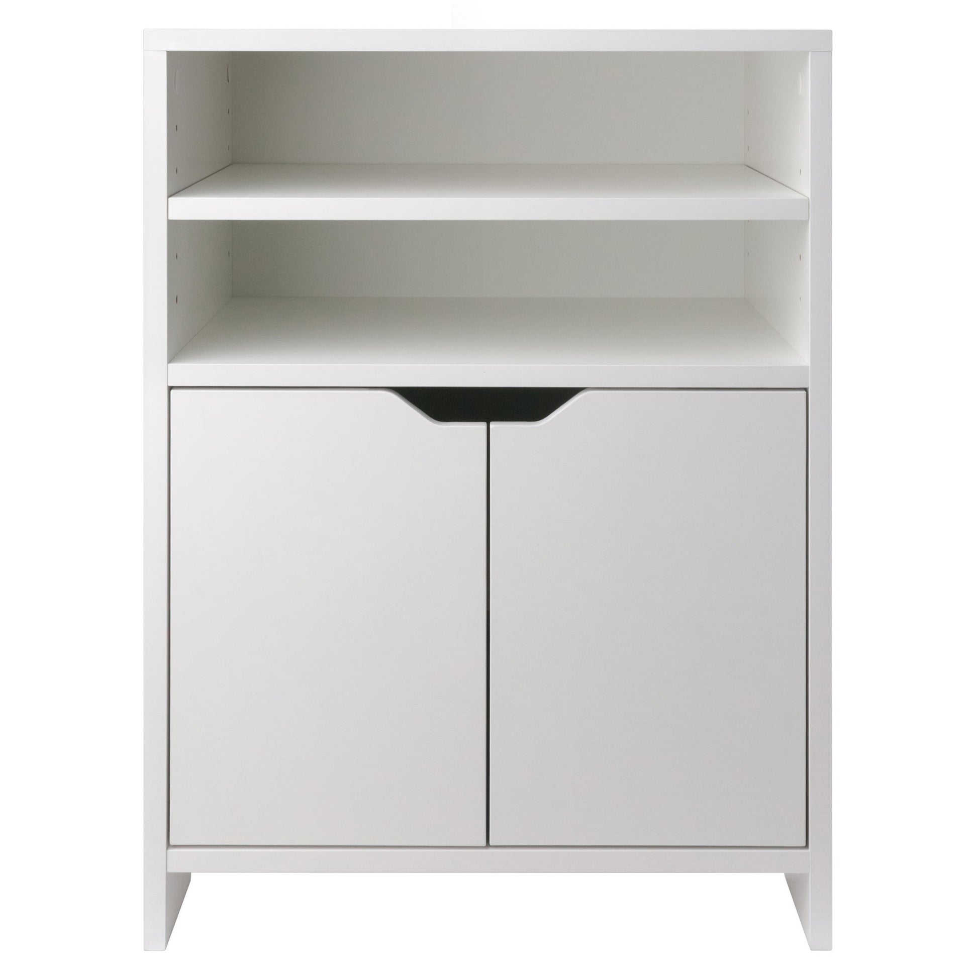 The Winsome Wood Nova 4-Shelf Storage Cabinet offers a streamlined way to transform any room where you need stylish, easy-access storage. This freestanding cabinet is ideal in a home office for keeping office supplies while doubling as a printer stand. In a garage or shed, it's a great organizer for tools and gardening equipment. Or use it as a side table in a child's bedroom to reduce the clutter of toys, electronics, and sports gear. The shelves for both the cabinet and open cubby are adjustable and removable, making the unit adaptable to a variety of storage needs. The cut-out handles and clean white finish provide a contemporary, simple look. For additional storage, combine with other organizers from the Winsome Nova collection. Made of sturdy composite wood, it conveniently ships in 1 box with all the hardware needed for assembly. Replacement part request can be submitted directly to the manufacturer, with sales receipt, within 60 days from date of purchase.