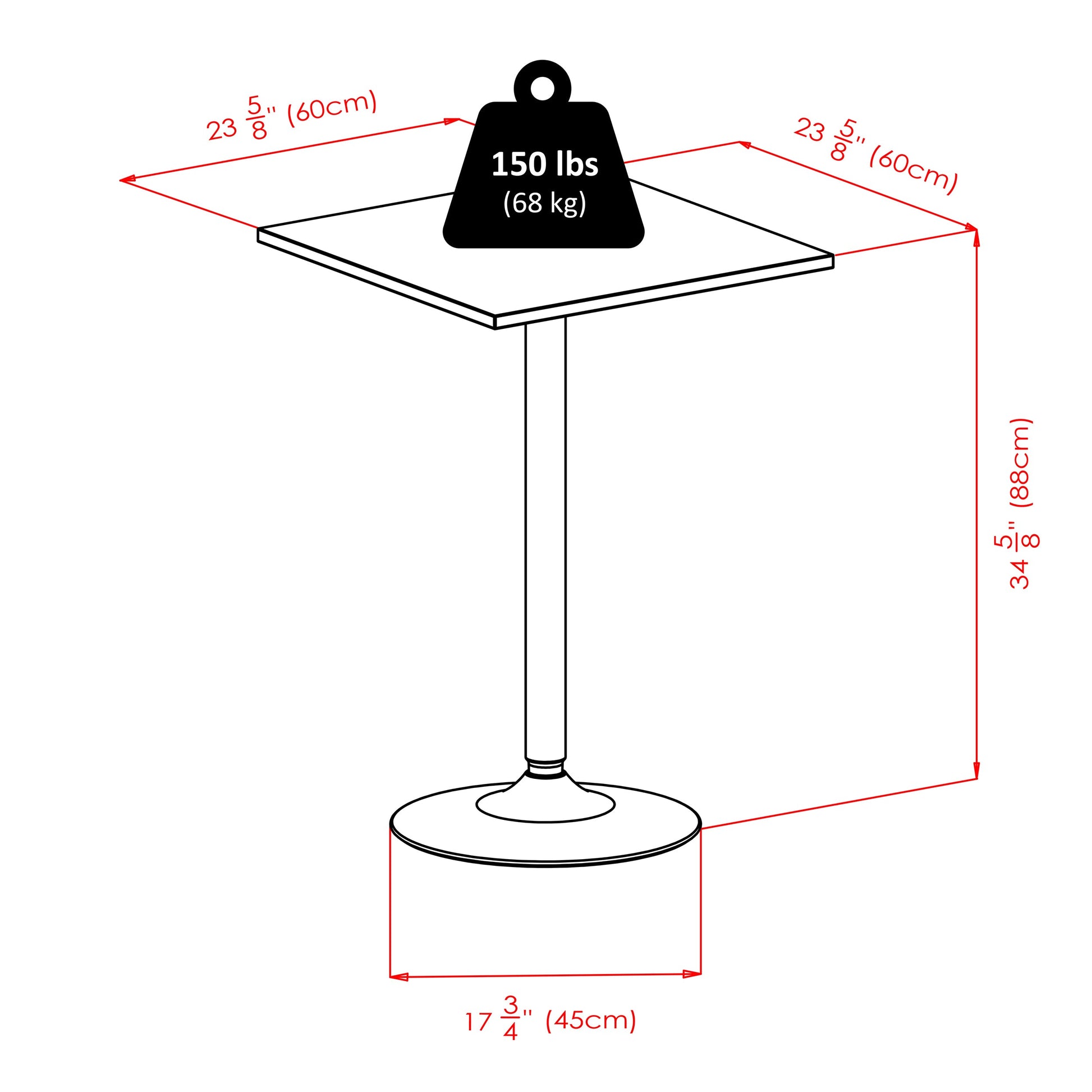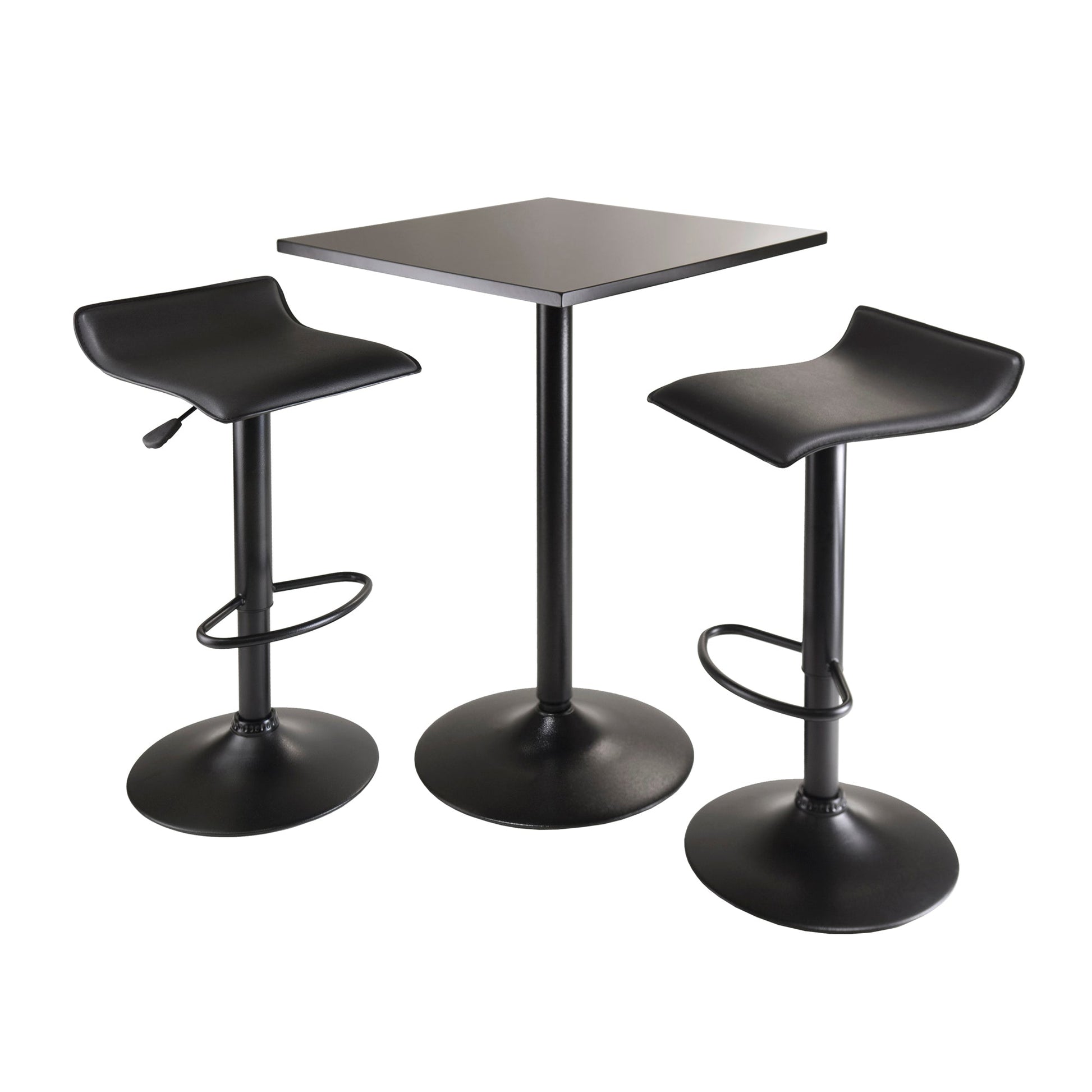 Add a compact table and stools to your kitchen or mini dining area with the Winsome Wood Obsidian 3-Piece Dining Set. It has a sleek and modern design that will blend well with contemporary settings. Compact yet still sophisticated style of this set makes it a great addition to any area; ideal for dining or social gatherings. The 23.62” W x 23.62” D pub top is constructed of a smooth, sturdy wood composite tabletop with a black veneer, ample space to have a meal or snacks. This style and sophisticated look will make an excellent addition to any area of your house. So, whether in your kitchen or the basement bar the black coated pedestal is built for durability and the 17.72” base offers a tip-free, stable support that helps provide durability and sturdiness for long-lasting wear as well as maximum legroom. Featuring two adjustable swivel stools with black PVC seat and black metal base that swivel 360 degrees for extra utility. The backless design makes these convenient for storing away when adjusted to the lowest position. Your guests can have their seat at their preferred height, raised up to 30.79” or easily lowered to 22.68” by just lifting the leveler on the side, making these suitable for all guest. With a 15” base that helps add sturdiness and foot bar providing that additional comfort while sitting. This set is shipped out in 2 boxes, each including the hardware necessary for assembly. Replacement part request can be submitted directly to the manufacturer within 60 days from date of purchase.Dimensions : 23.62 in. Wide 23.62 in. Deep 34.65 in. High
