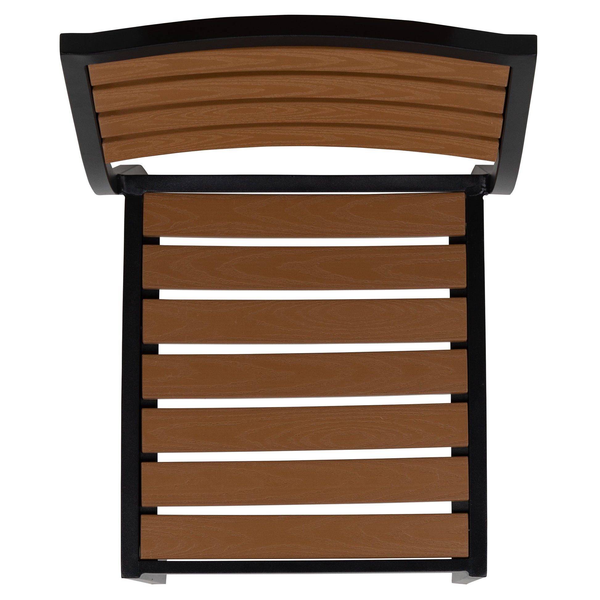 Lark Outdoor Stackable Side Chair with Faux Teak Poly Slats Dimensions: 19"W x 21.25"D x 34"H