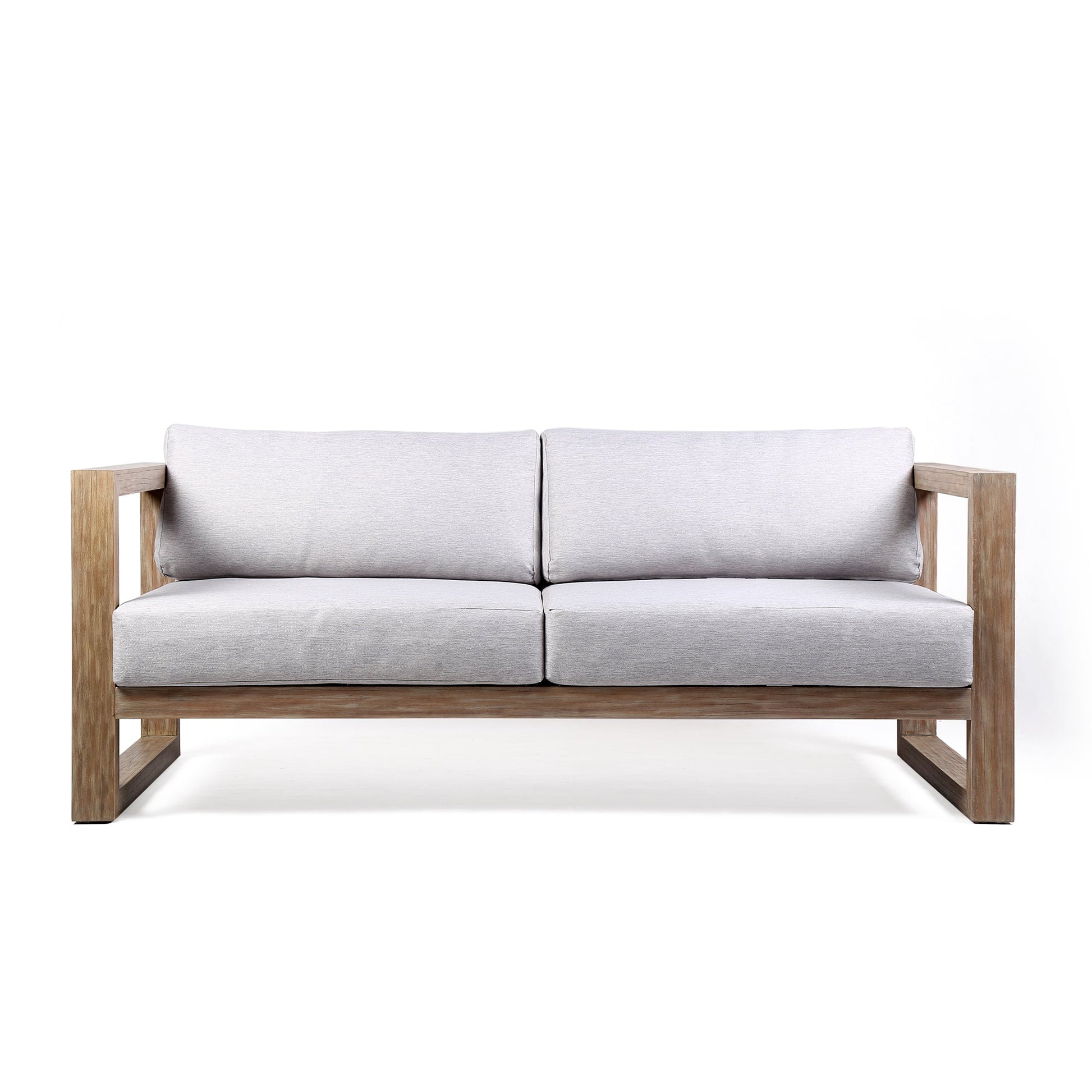 Paradise Outdoor Light Eucalyptus Wood Sofa with Gray Cushions