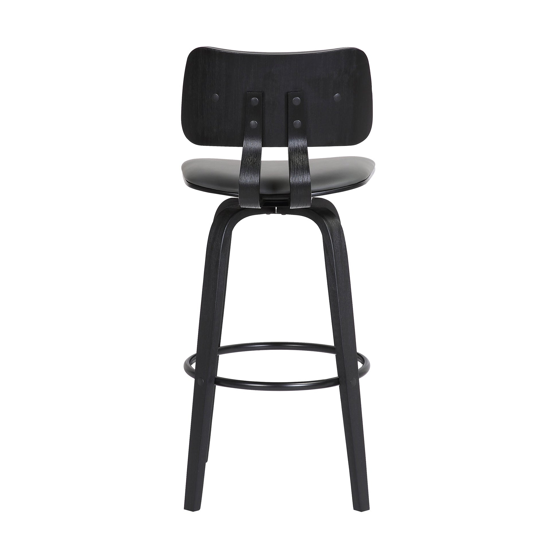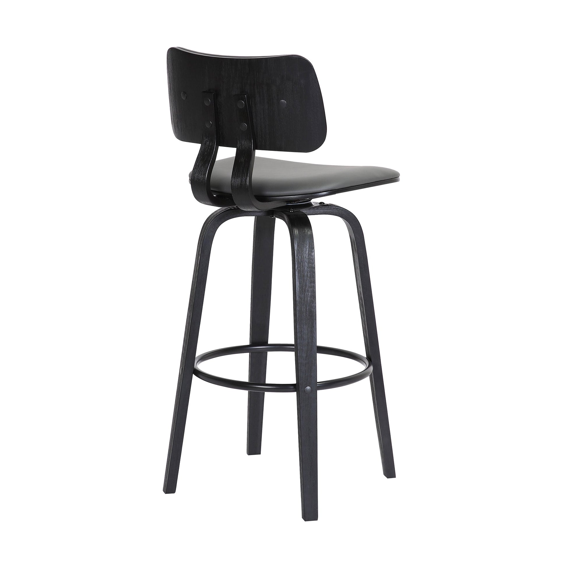 Pico 26" Swivel Black Wood Counter Stool in Gray Faux Leather with Black Metal