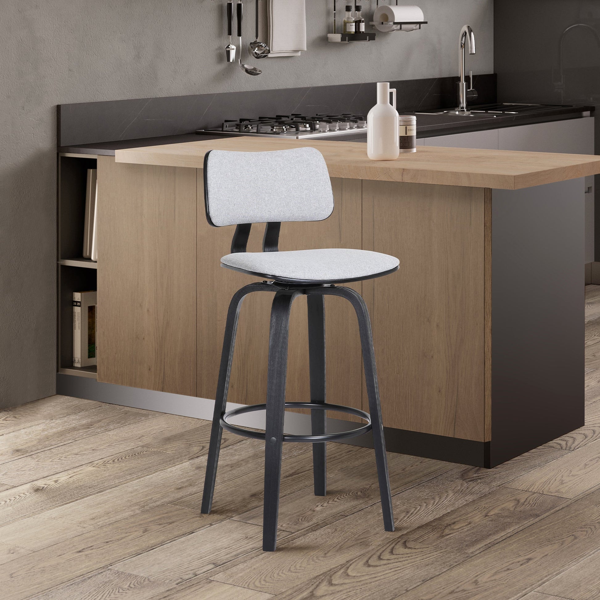 Pico 26" Swivel Black Wood Counter Stool in Light Gray Fabric with Black Metal