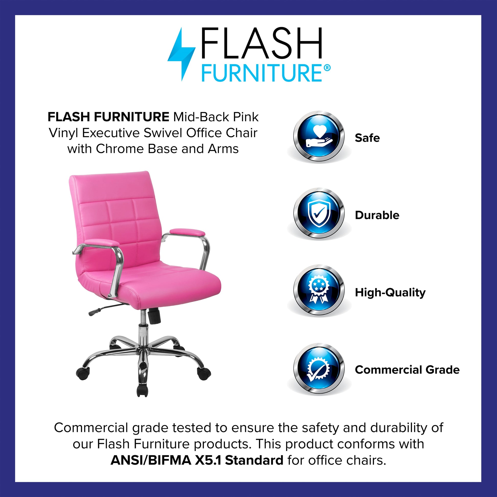 Vivian Mid-Back Pink Vinyl Executive Swivel Office Chair with Chrome Base and Arms Dimensions: 23"W x 24"D x 37" - 40"H
