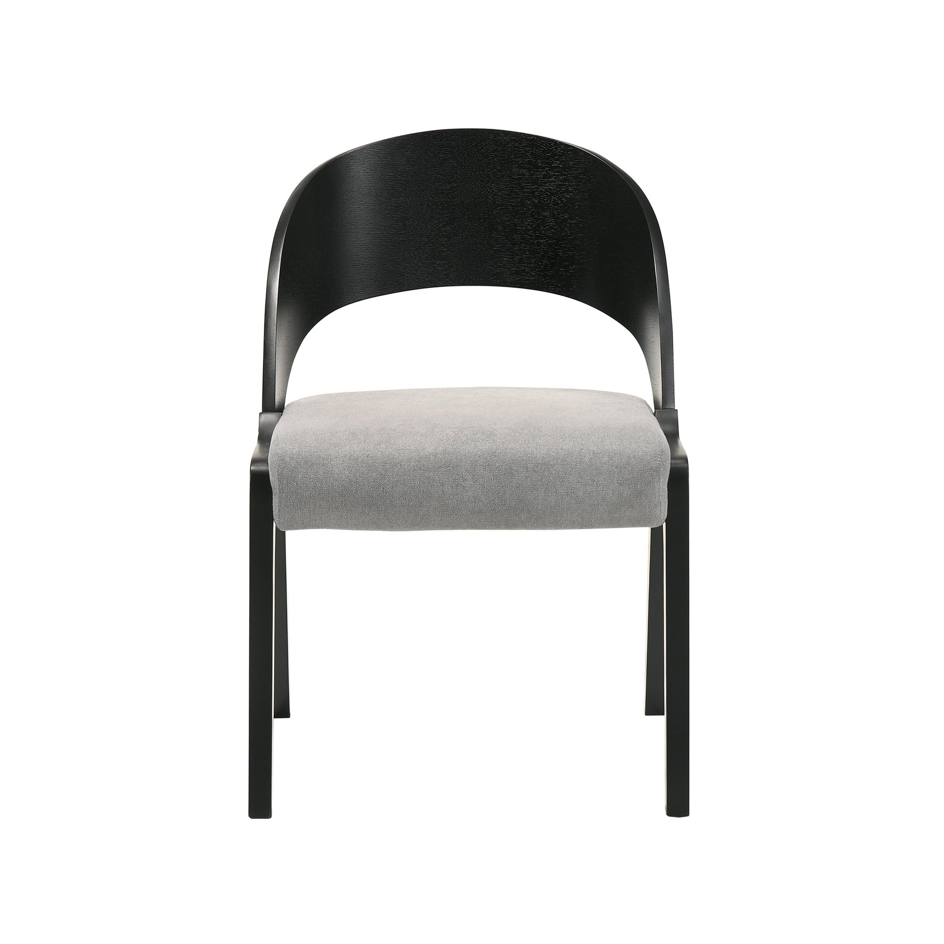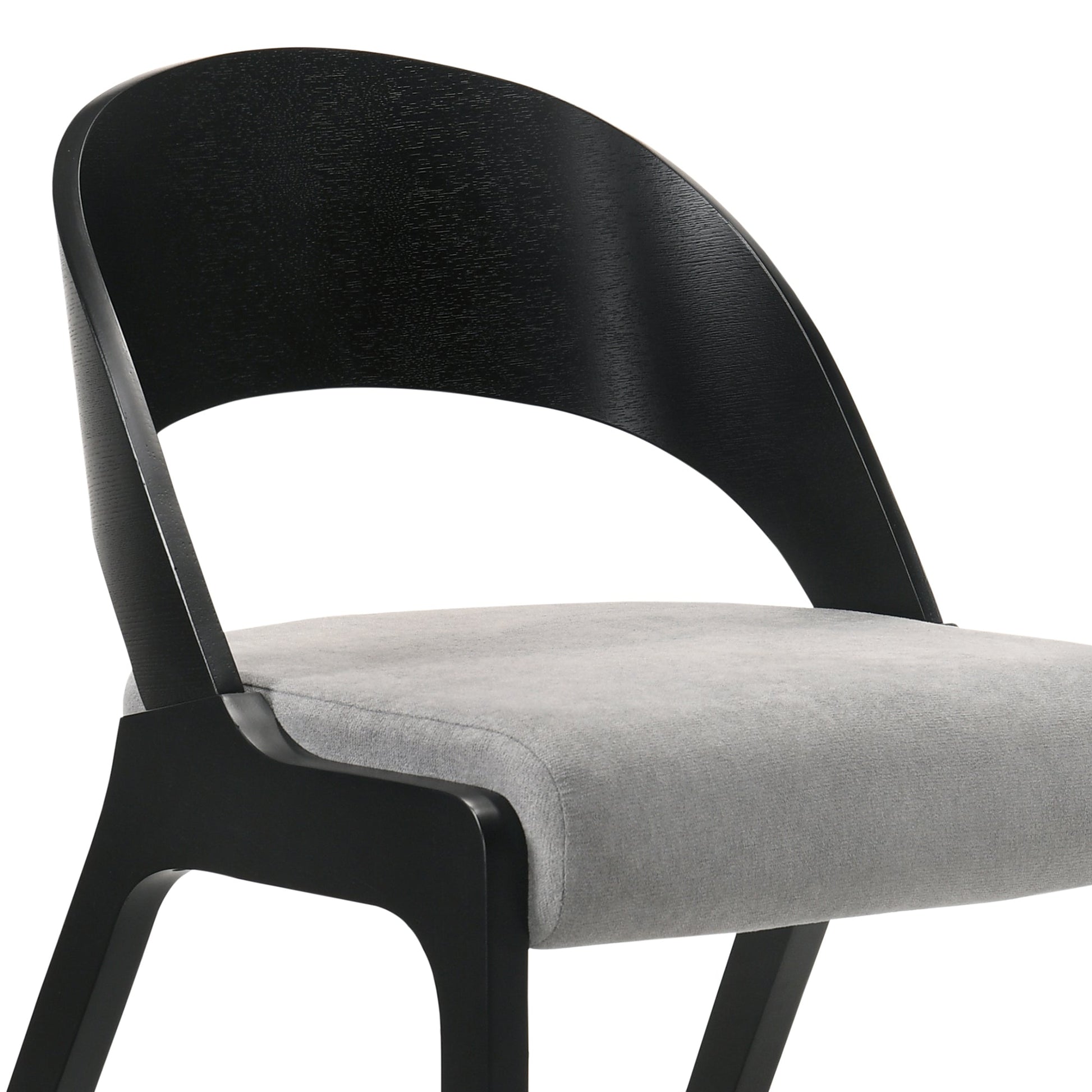 Polly Mid-Century Gray Upholstered Dining Chairs in Black Finish - Set of 2