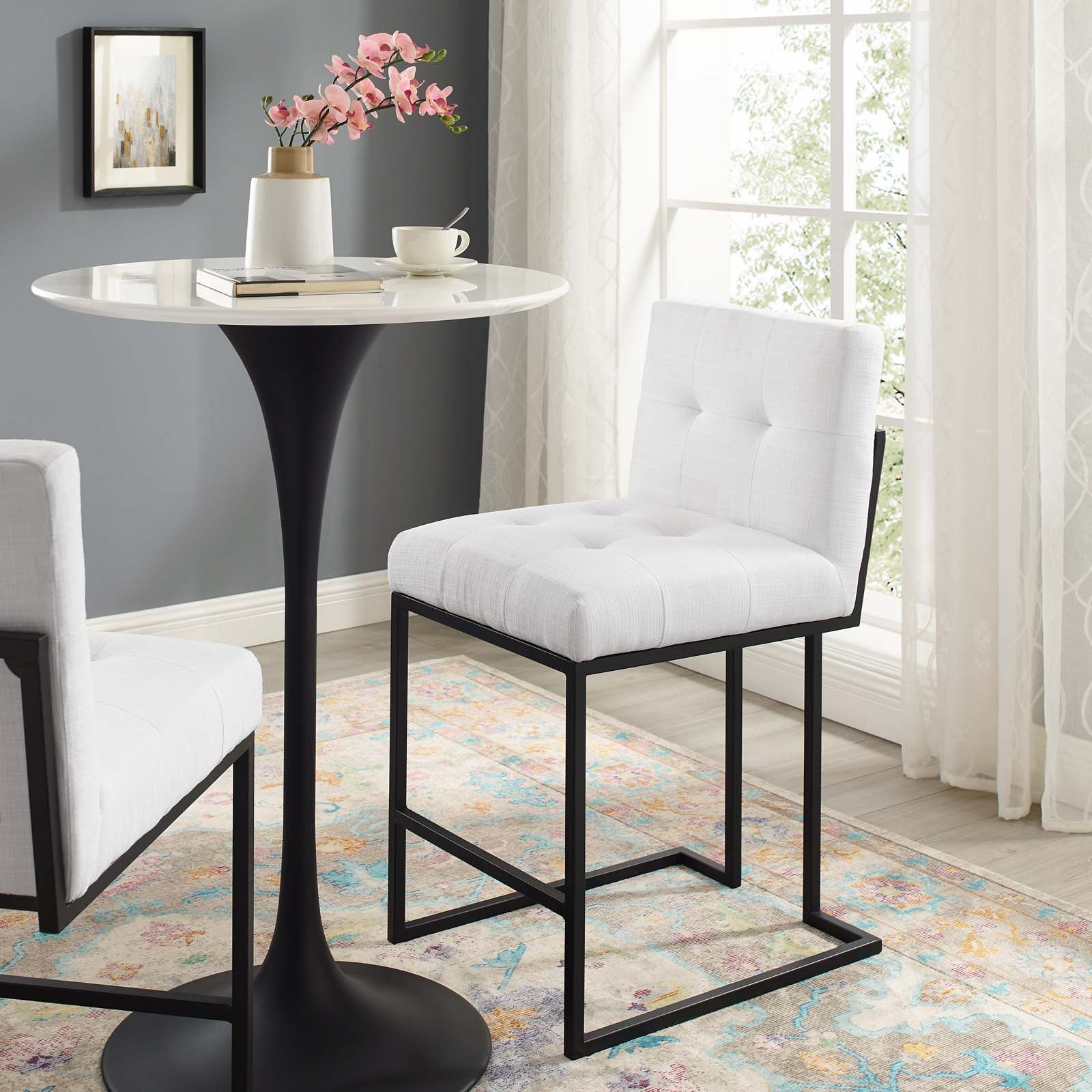Privy Black Stainless Steel Upholstered Fabric Counter Stool by Modway EEI-3854-BLK-WHI
