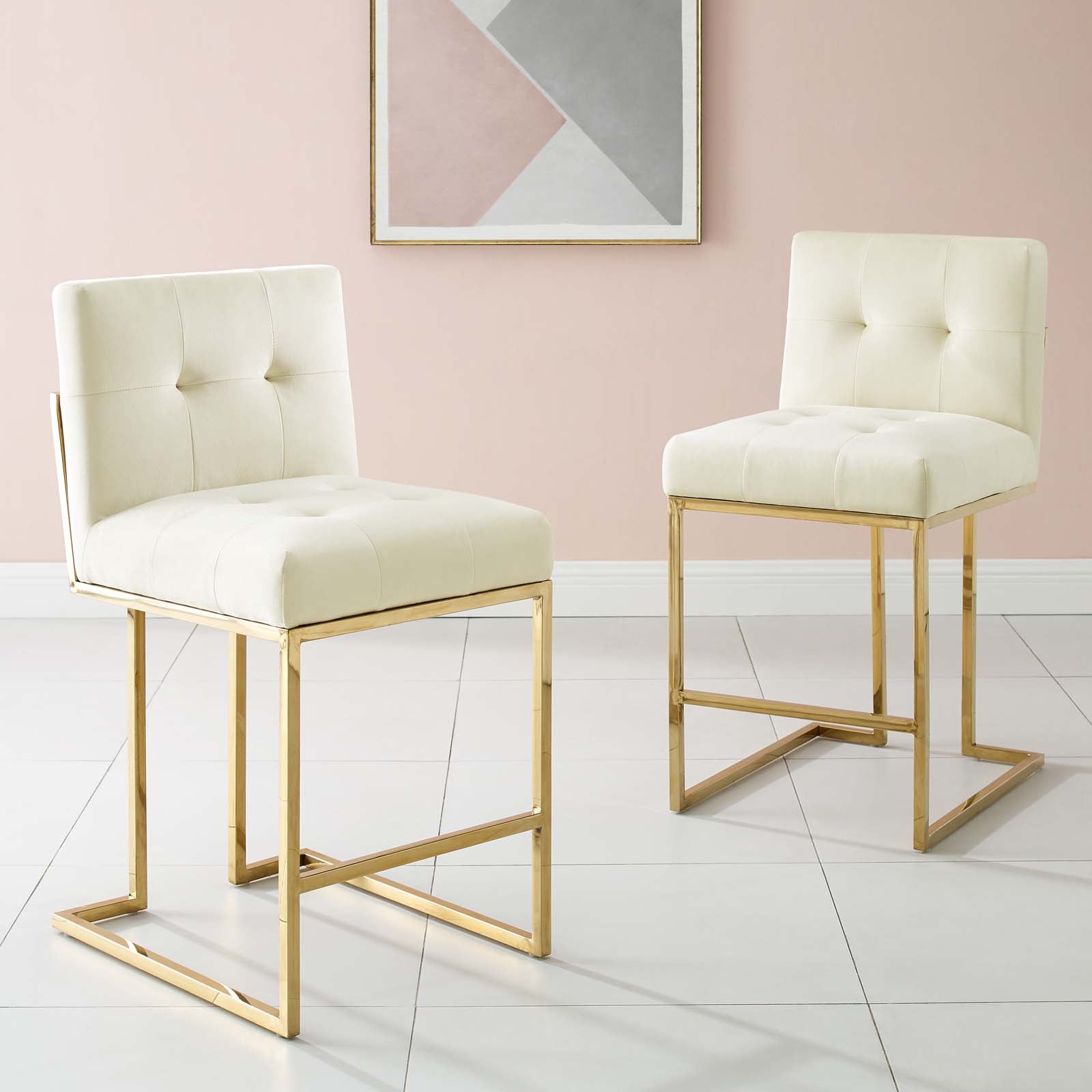 Privy Gold Stainless Steel Performance Velvet Counter Stool Set of 2 Gold Ivory EEI-4155-GLD-IVO