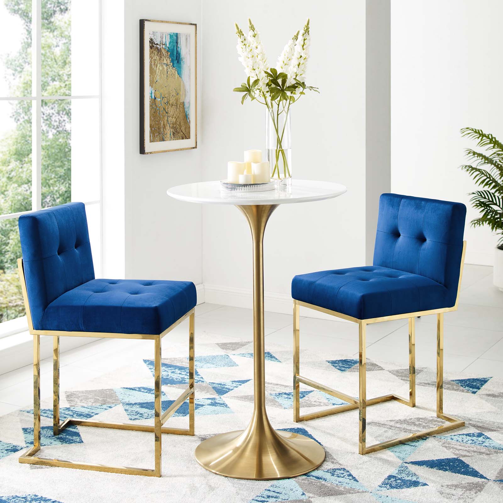 Privy Gold Stainless Steel Performance Velvet Counter Stool Set of 2 Gold Navy EEI-4155-GLD-NAV