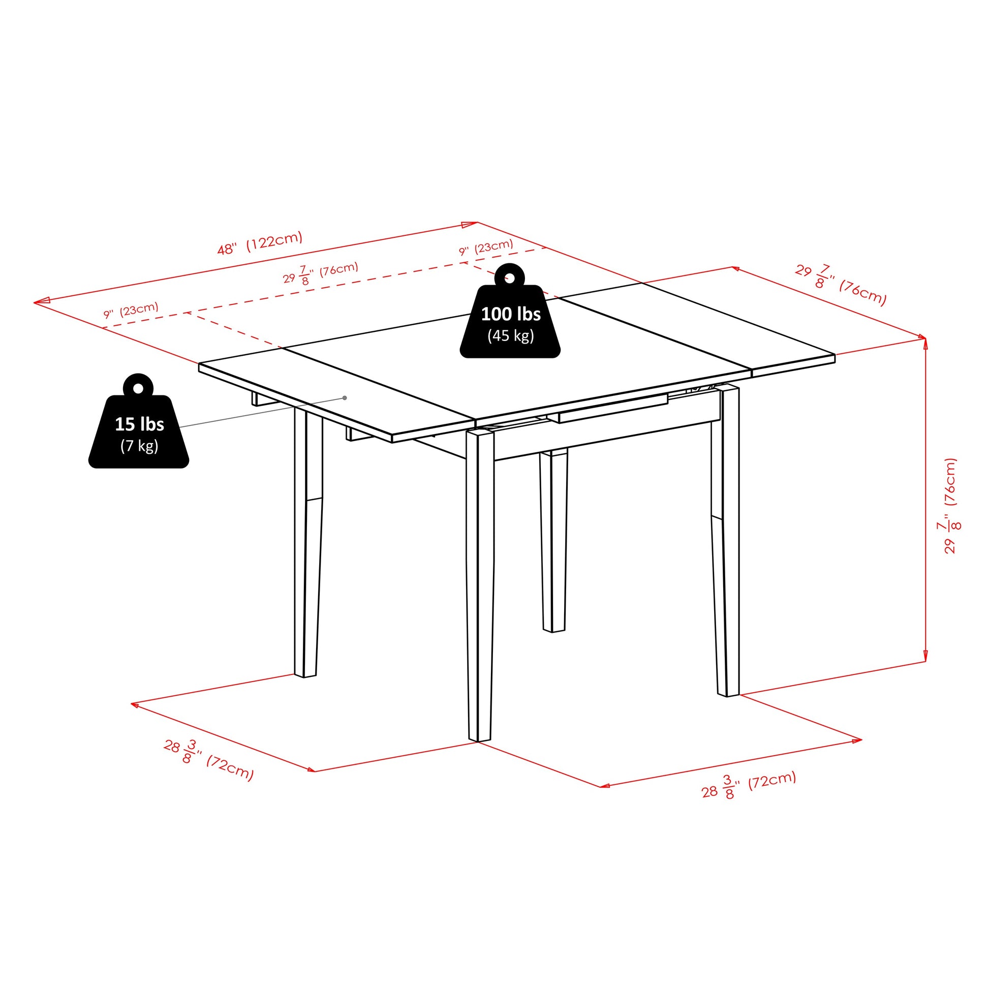 Table dimensions with leaves tucked in: 29.9"W x 29.9"D